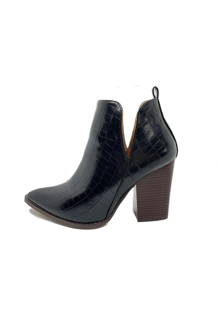 These classic booties with an easy to style shape and slightly pointed toes go with basically everything. Added bonus—their solid chunky heel provides comfort and just the right amount of lift for a busy day. The vegan leather is durable and easy to clean. Dress up your everyday t-shirt and jeans look or add a little extra flare to a ladylike dress or our Cheetah print skirts and tops with these lovely boots.