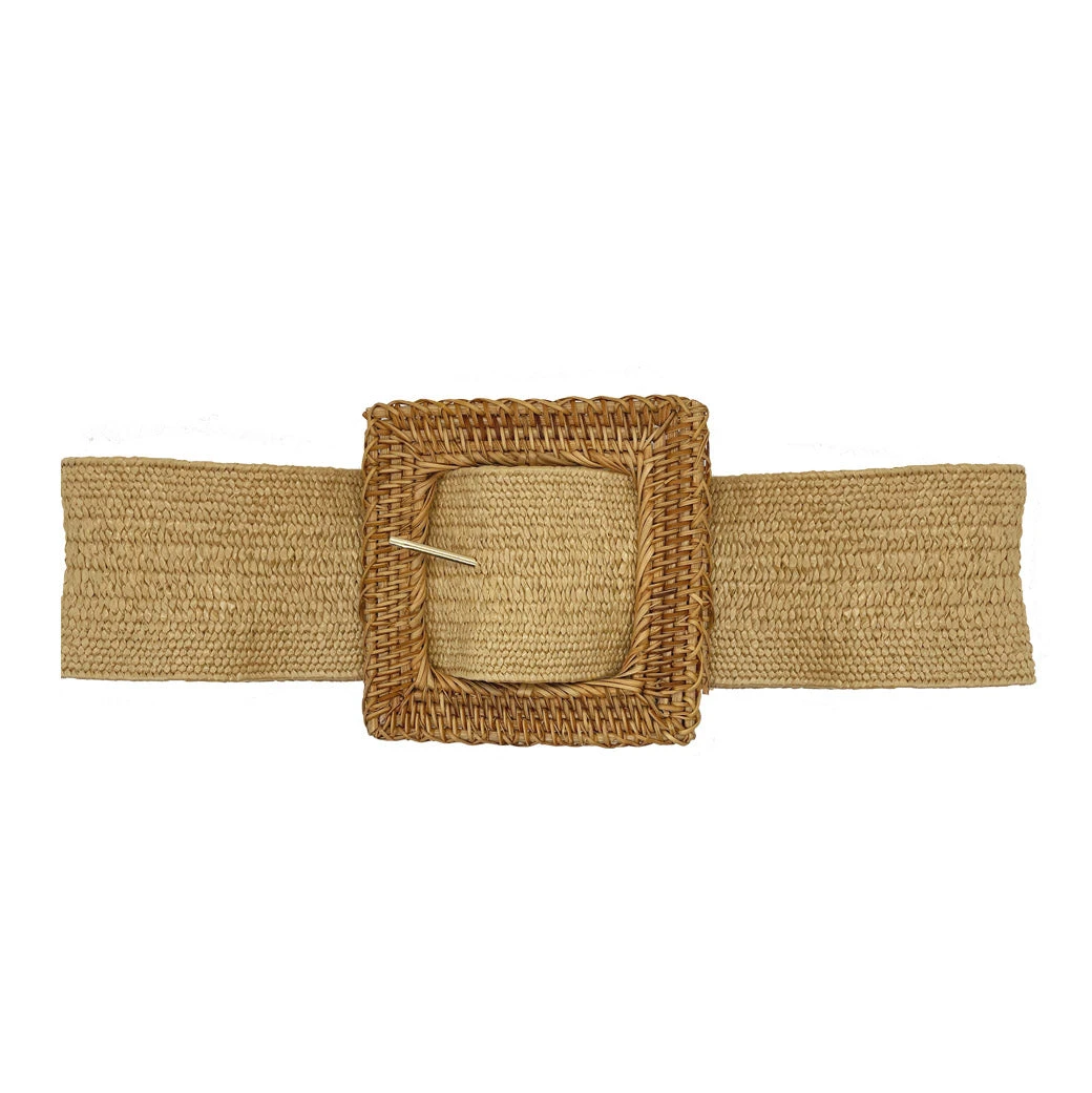 Bold, whimsy and STRETCHY! This statement belt, with an oversized square rattan buckle is a nice way to add a little definition and texture to your look. Cinch your waist or define a look with this woven, adjustable belt. Conveniently crafted without holes—one size truly fits most!
