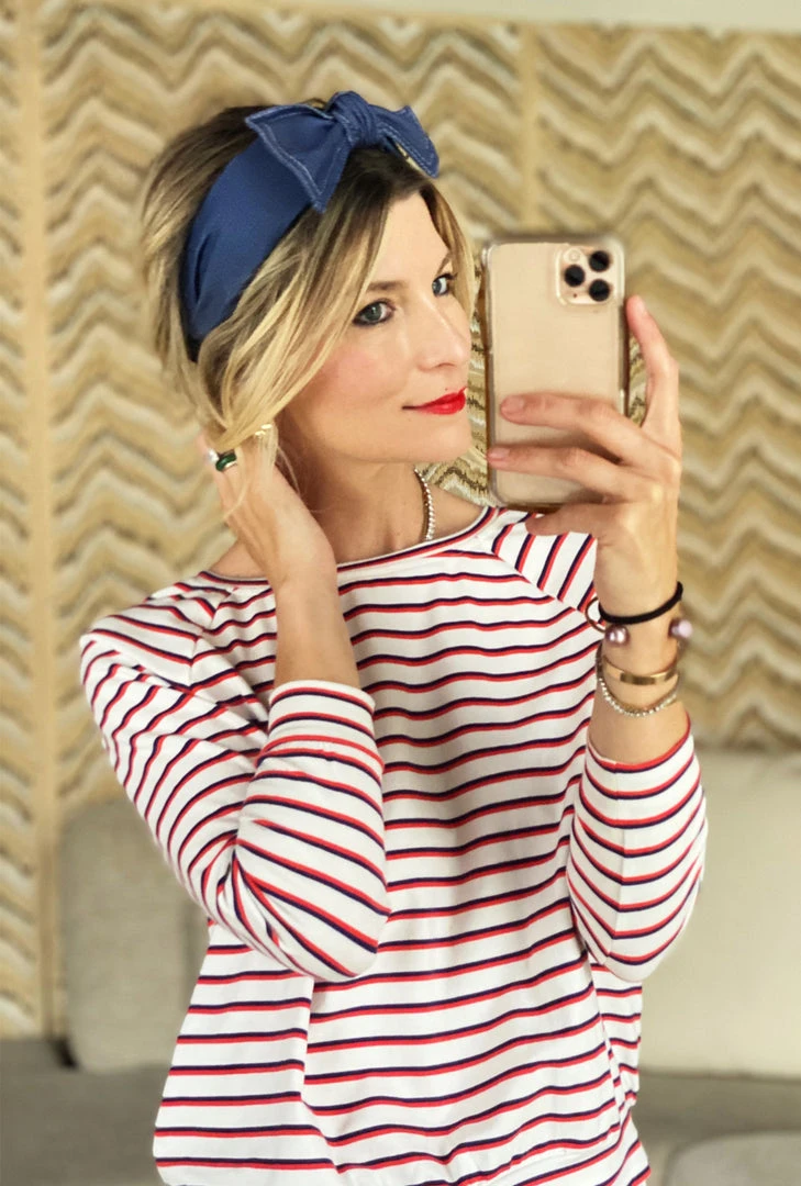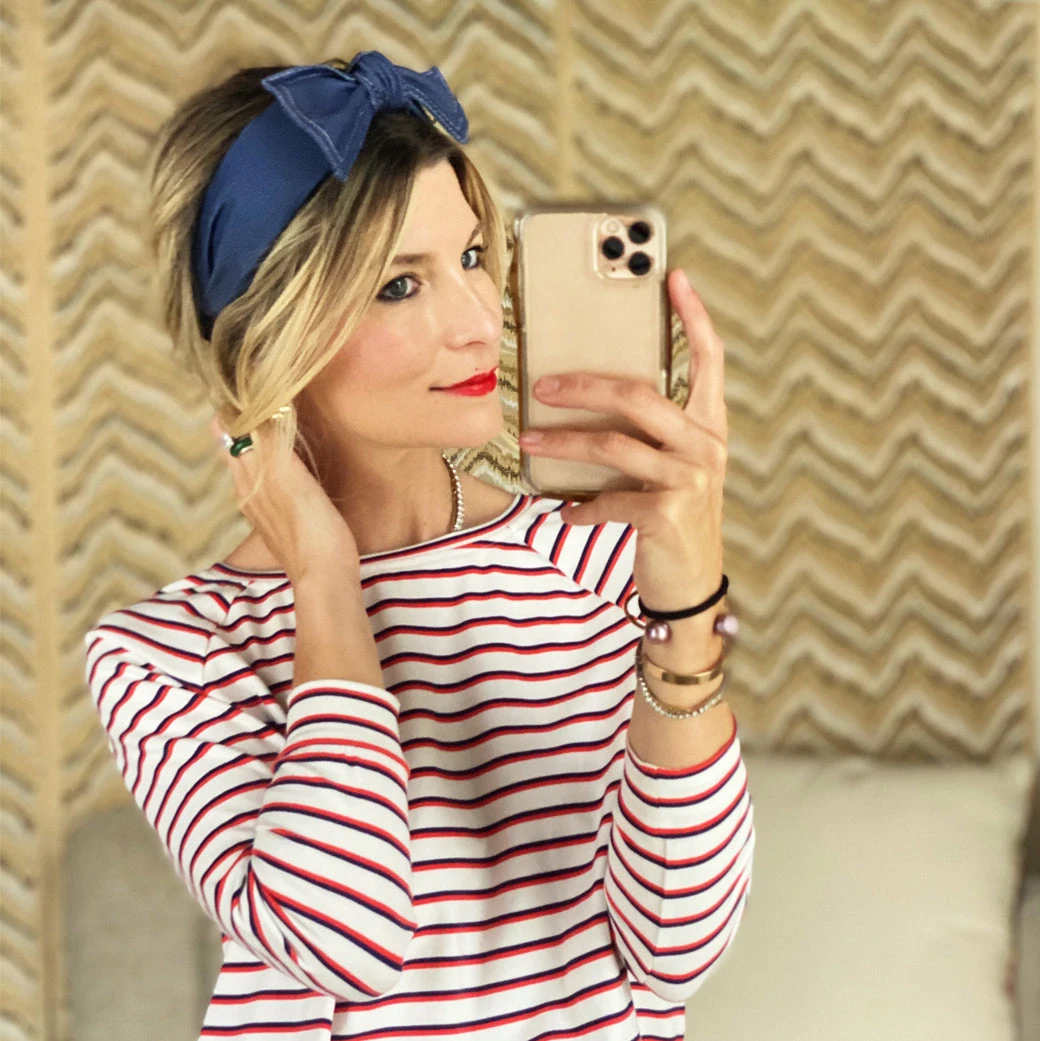 This vintage, Daisy Mae inspired denim headband is a fun way to camouflage greasy locks, or bad roots when mom life gets too busy for professional blow-outs.