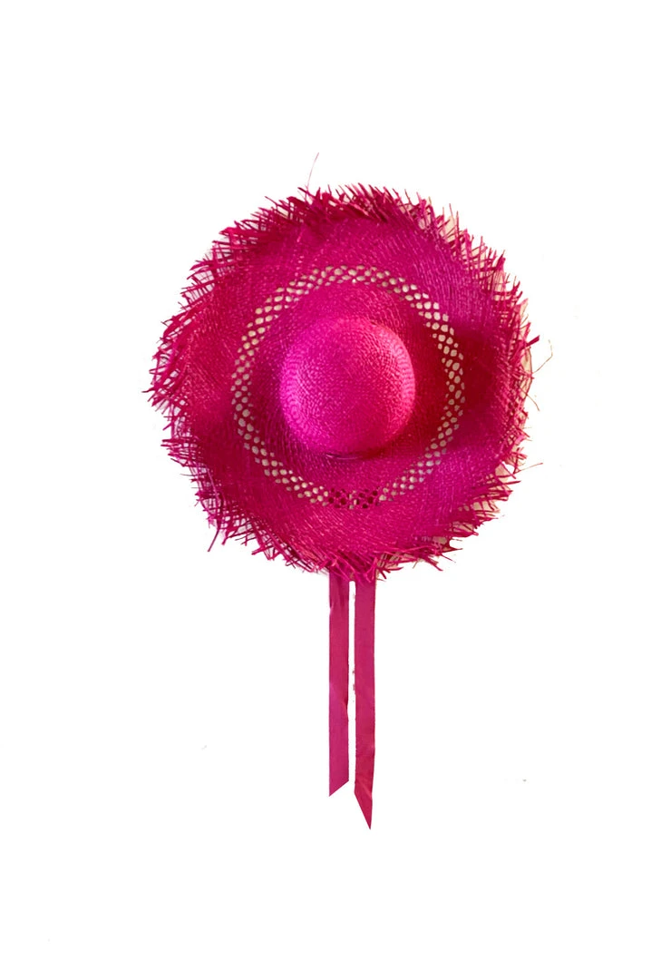 Add a little color to your pool side ensemble or shade that beautiful face of yours in style with our organic raffia straw hat in a bold hot pink with a matching gross grain ribbon chin tie. Perfect for busy mamas running after little tots.