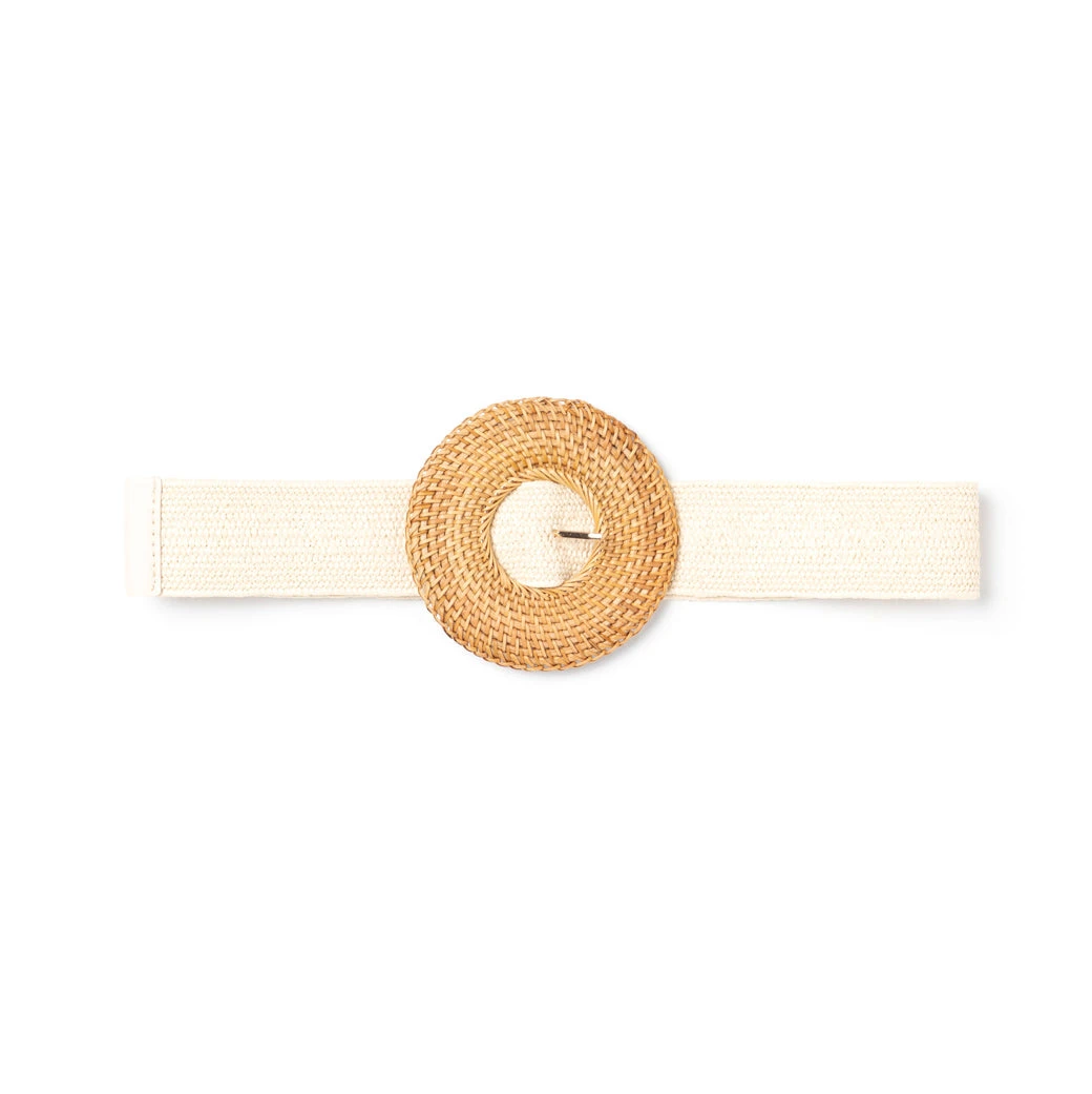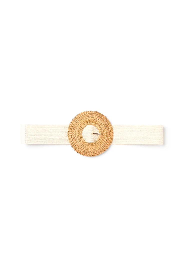 Simple, fun, and STRETCHY! This belt with a chic rattan buckle is a nice way to add a little definition and texture to your look. Cinch your waist or define a look with this woven, adjustable belt. Super convenient without holes, so one size truly fits most!