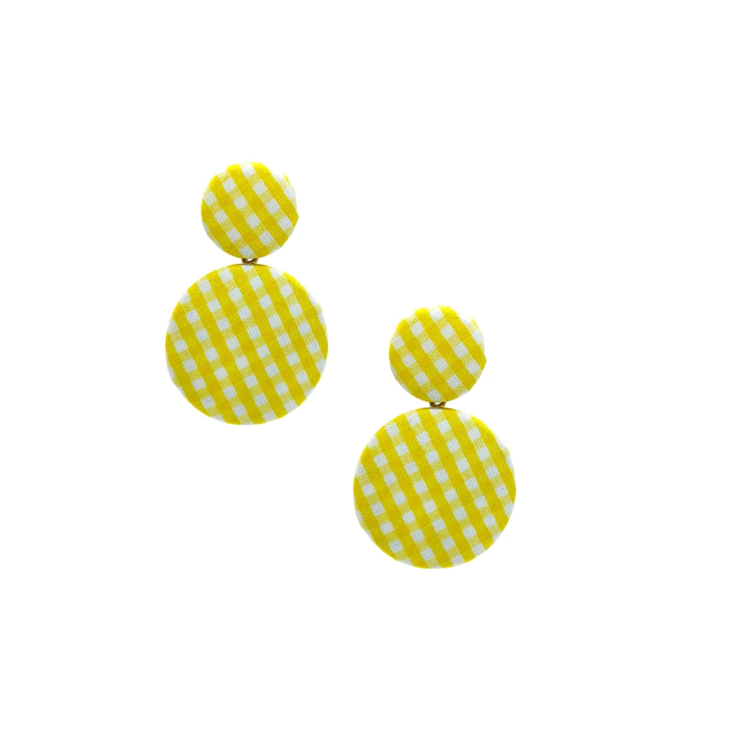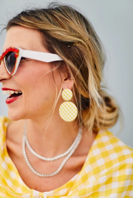 Give us all the gingham. These yellow and white double rounds add classic, yet whimsy touch to your summer style. We particularly love them with our coordinating yellow and white gingham Shawl Dress.