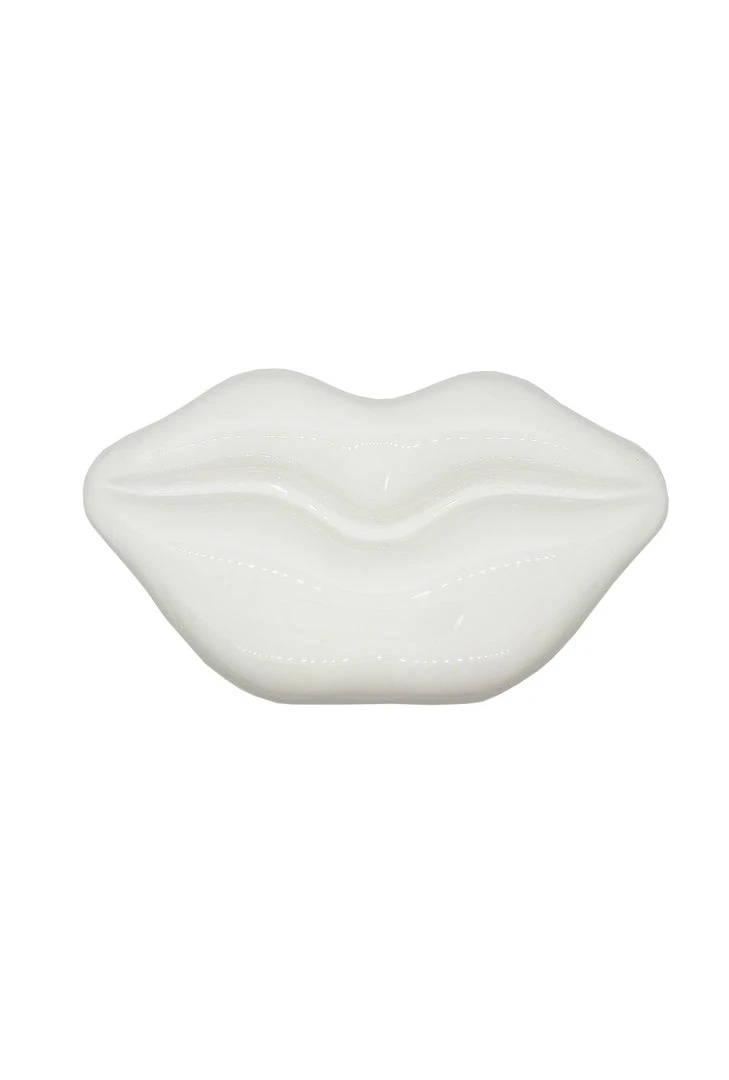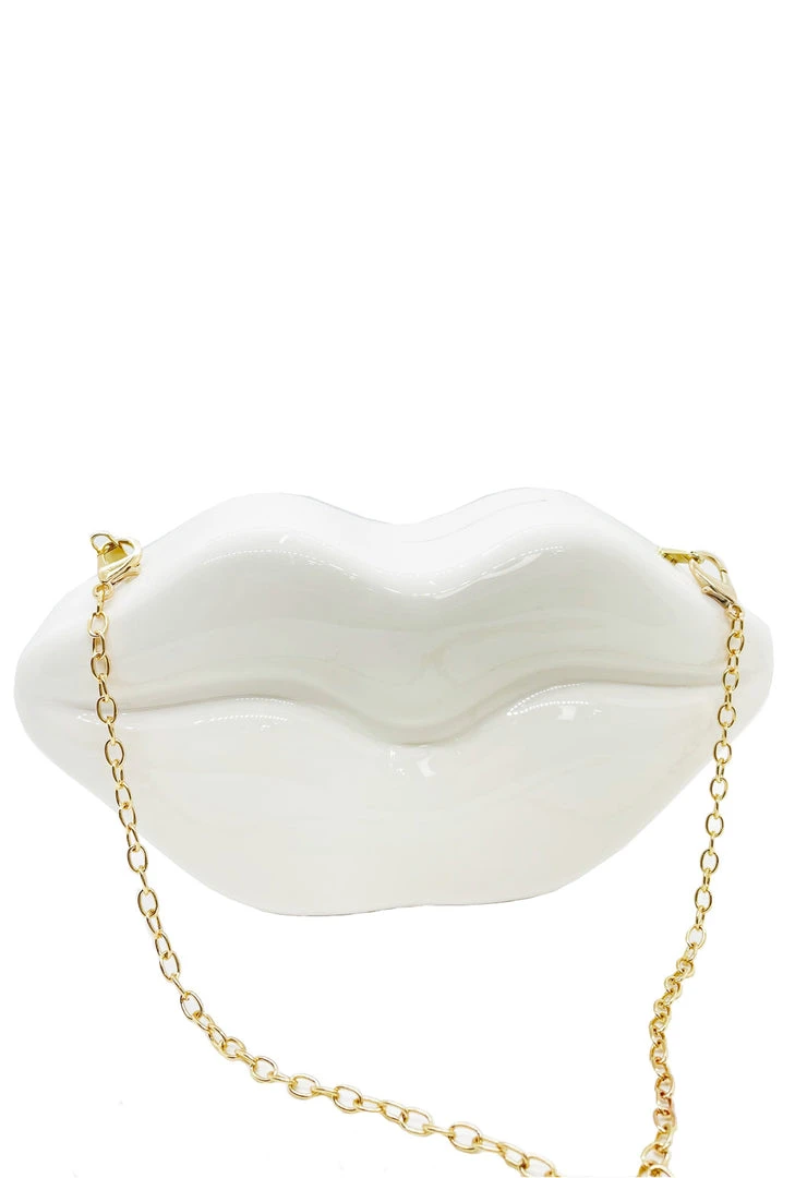 Carry a kiss with you all day with this darling, bright white, lip-shaped acrylic clutch. Complete with detachable chain and large enough to hold most phones (please note it will not hold the jumbo i-phone), this whimsy bag is sure to bring a smile to your lips!