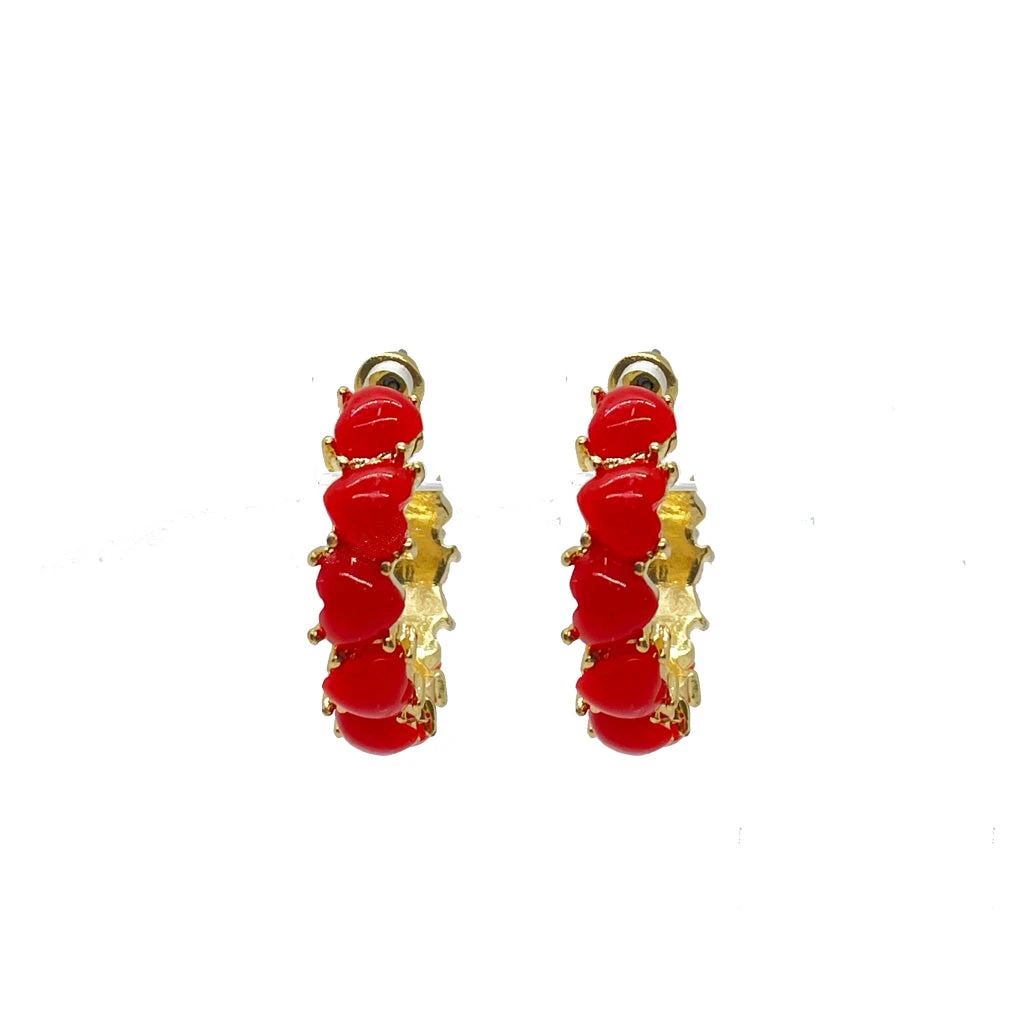 Wear your heart on your ear with these beautifully crafted hoops. Lightweight enough for all day wear, these festive loops top off your everyday mom style. Enameled red hearts embedded into brass, they look just as good with jeans and a t-shirt as they do paired with a party skirt and formal attire.