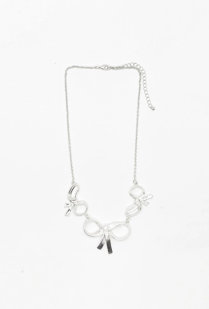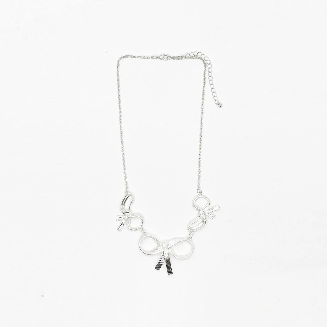 What is better than 1 bow on a necklace? The answer is 3! This lovely, ladylike necklace is such a fun addition to your festive holiday style.