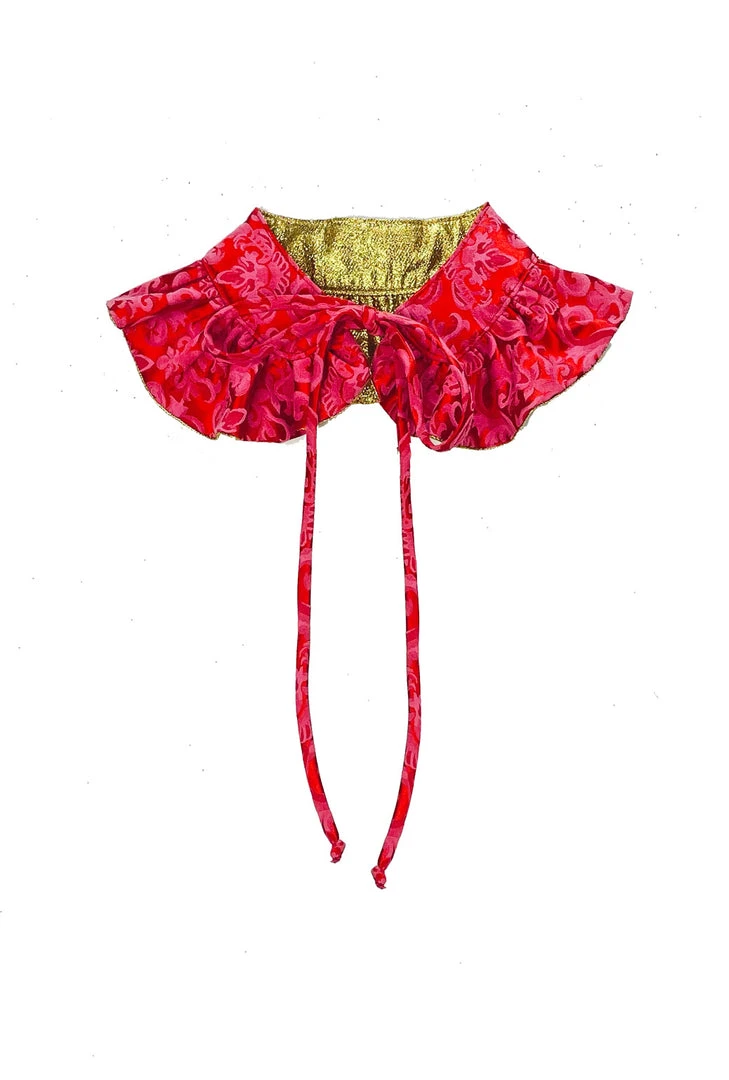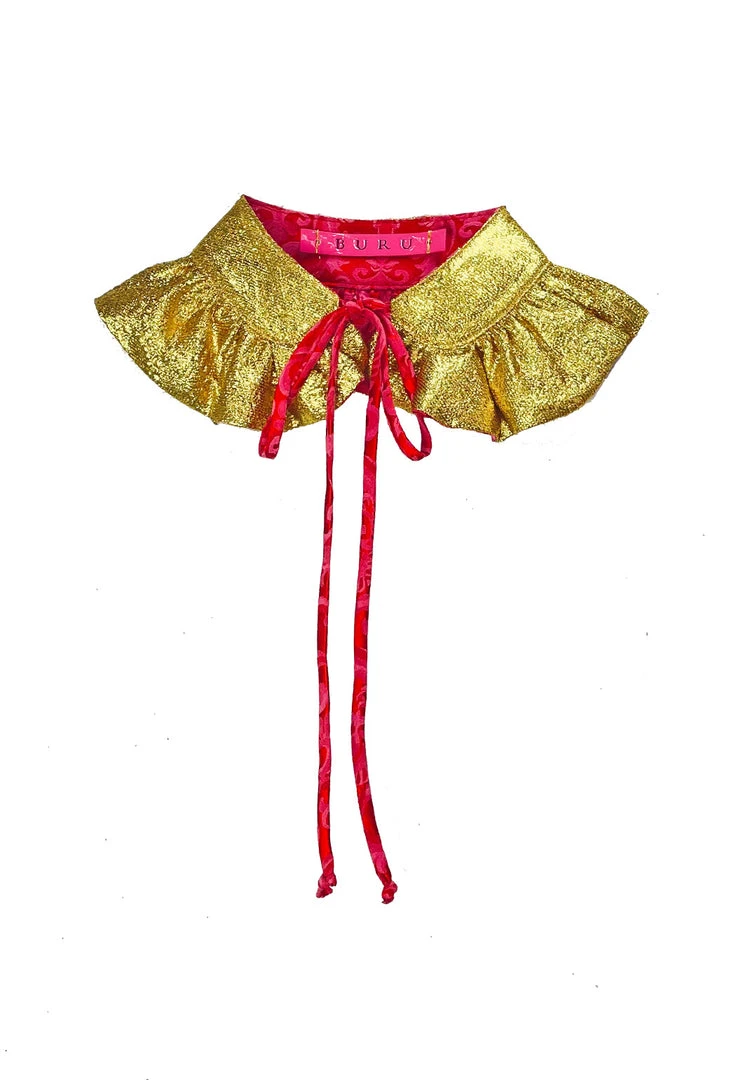 With the quick addition of our #BURUxVal collar, you can take your look from “basic” to WOWZA, “who is she?” We love the holiday happy red and pink jacquard size styled with its matching Ruffled Party Skirt or over a simple white tee and jeans. And the gold lamé is the side of shine you’ve been searching for!