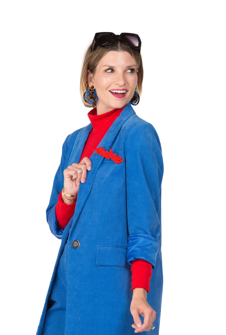 Exclusively made for BURU, this hand-beaded, signature Mignonne Gavin Brooch, elegantly emblazoned with Mère (a la Mother en fraçais) adds the perfect POP to any look. It’s the perfect balance of whimsy and bold—but more than that, it truly has a purpose. It has a statement to make. Our Vive la Mère message is more than words, it’s a movement. For every exclusive Mère Brooch sold, we will donate 20% of the proceeds to Bring Change to Mind—our non-profit partner on a mission to end the stigma of mental illness.