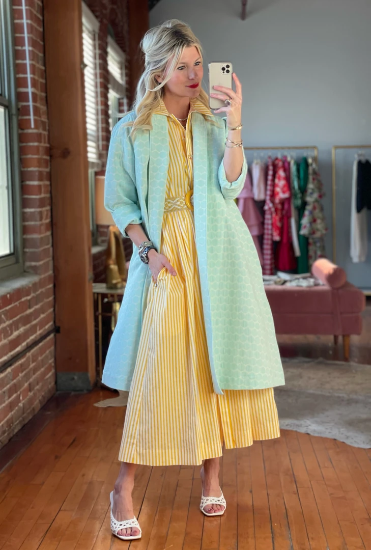 Conveniently crafted without holes—one size truly fits most! Beautiful ivory and white woven pattern paired with a bright yellow acrylic buckle.