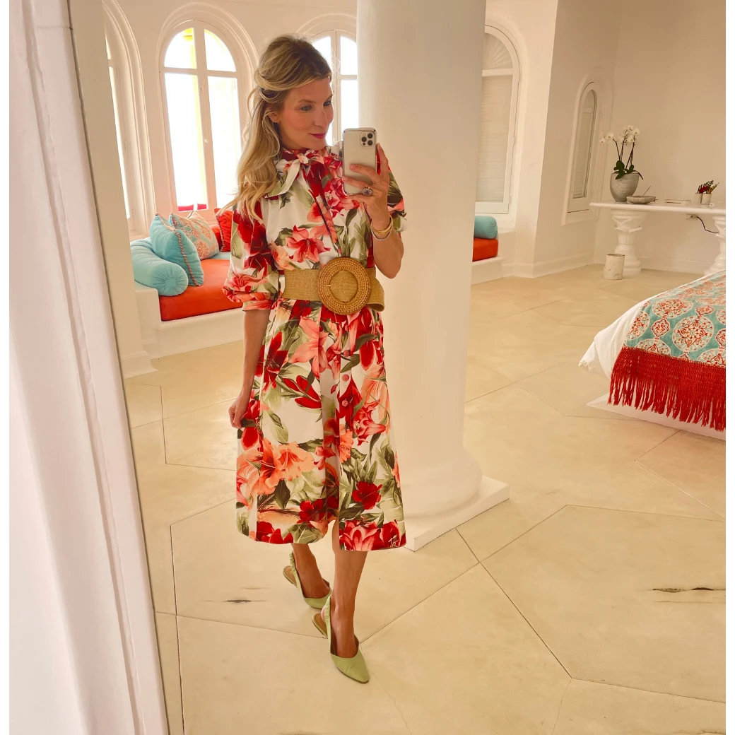 Is there anything better than a easy day dress in a bold botanical print for busy mom life? We don’t think so. And let us tell you why this one is extra great. For starters, she’s comfy cotton (with a little stretch). She also has pockets, her print hides all kinds of stains and she can be dressed up or down with the simple change of a shoe or addition of a belt!