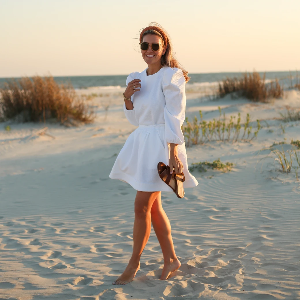 This quilted knit, white skirt is as fresh as it comes. We love it styled with its matching Puff Sleeve top—tucked or untucked it creates a classic styles that easily dresses up or down. Pair it with sneakers on the tennis court or dress it up with heels and a belt for a night out.