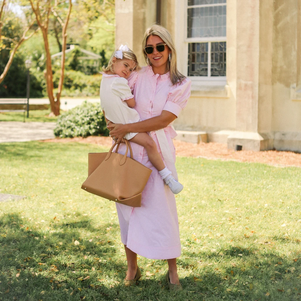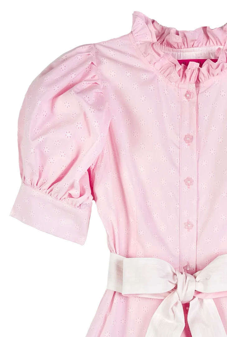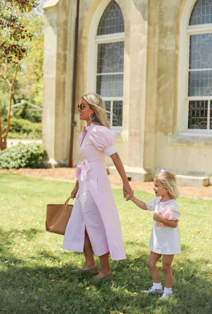 This dress is the embodiment of modern femininity. Made of 100% cotton in a dainty daisy print, this washable garment, WITH pockets and a 2-tone sash is as perfect for Mother’s Day brunch as it is for bopping around town with your favorite sneakers. Girl mom? Don’t miss a matching moment with your mini me in our coordinating Peter Pan Collar dress is white textured cotton with the contrasting Pink Daisy print.