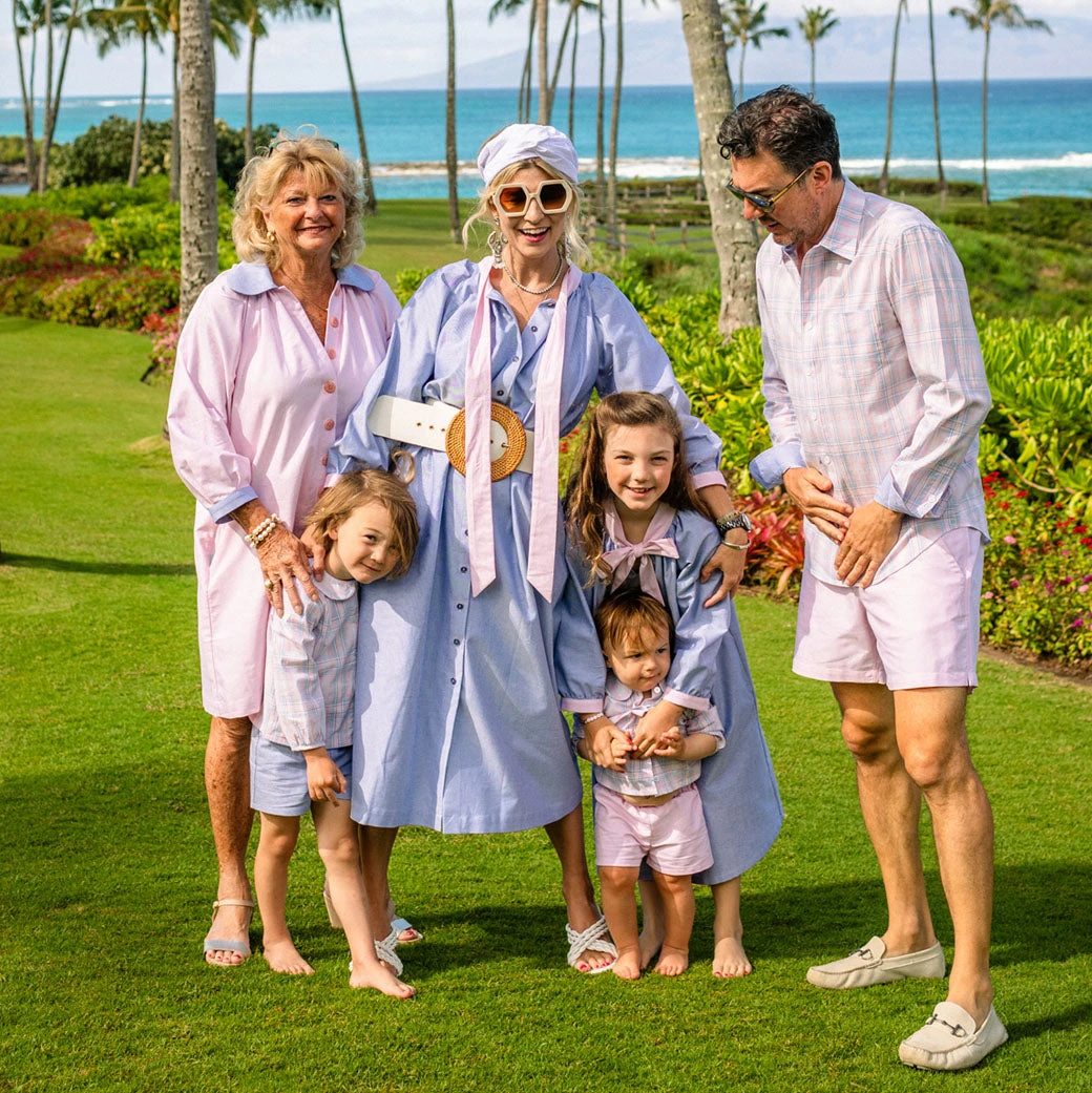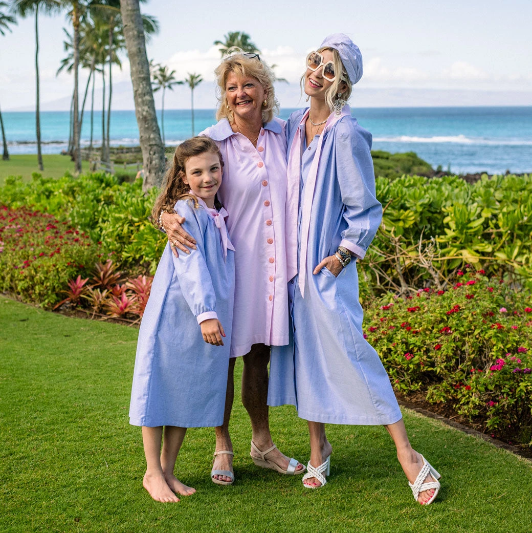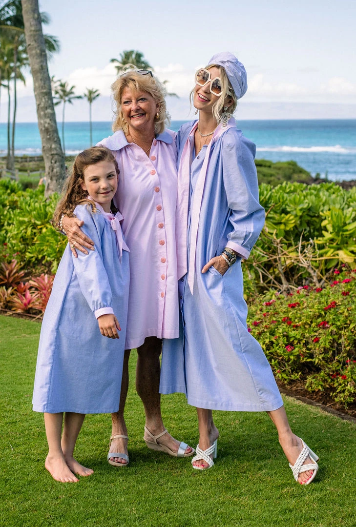 One of our top selling silhouettes of the year, the Bow Housecoat is as dreamy as it is comfortable. This classic blue oxford features pink oxford ties, and our staple vintage blue buttons. Need a quick family photo? Pop this on and voila! Plus you can outfit the whole family from Dad, to both your boy and girl littles with this collection.