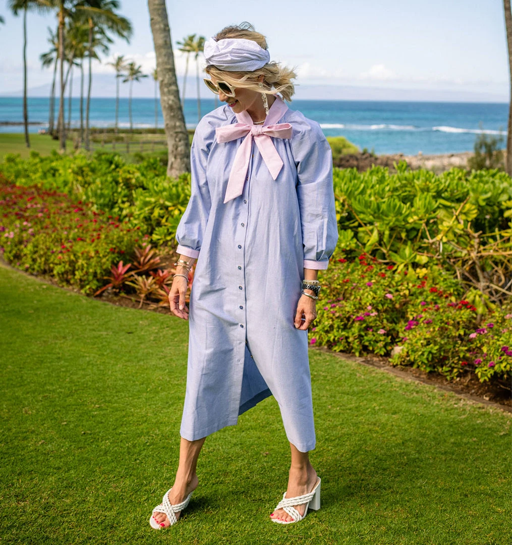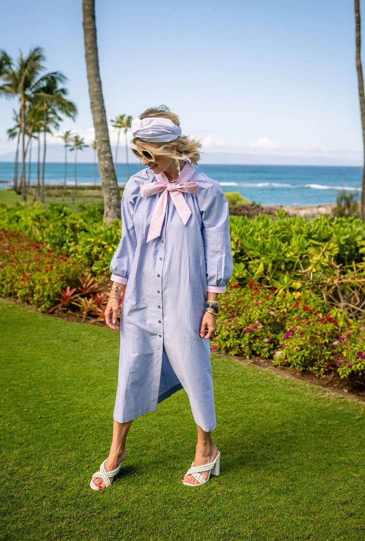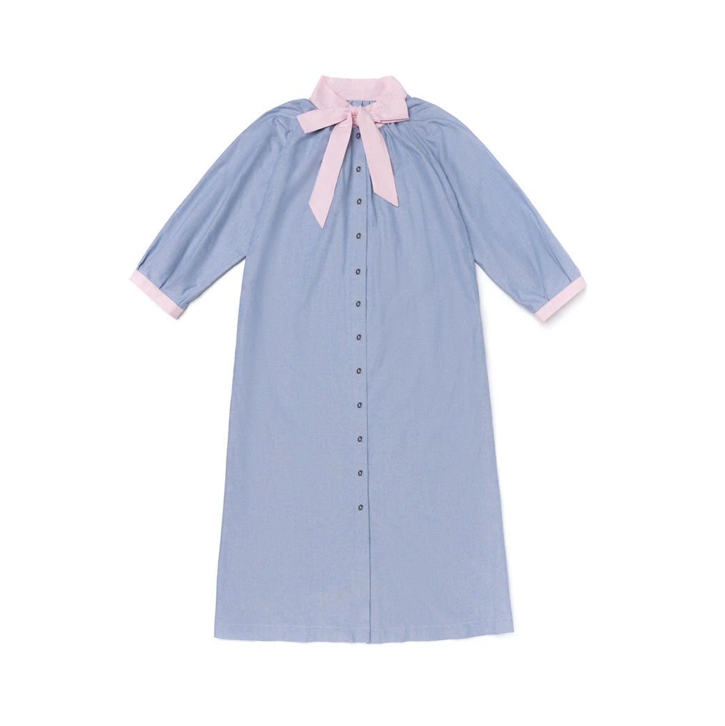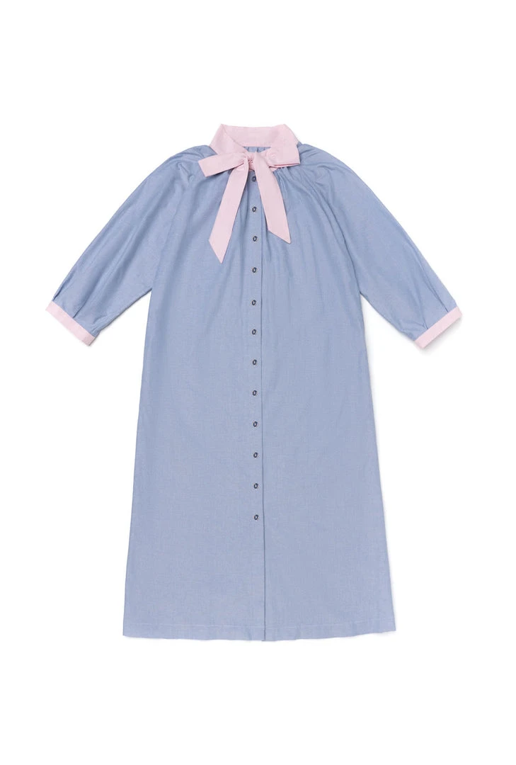One of our top selling silhouettes of the year, the Bow Housecoat is as dreamy as it is comfortable. This classic blue oxford features pink oxford ties, and our staple vintage blue buttons. Need a quick family photo? Pop this on and voila! Plus you can outfit the whole family from Dad, to both your boy and girl littles with this collection.