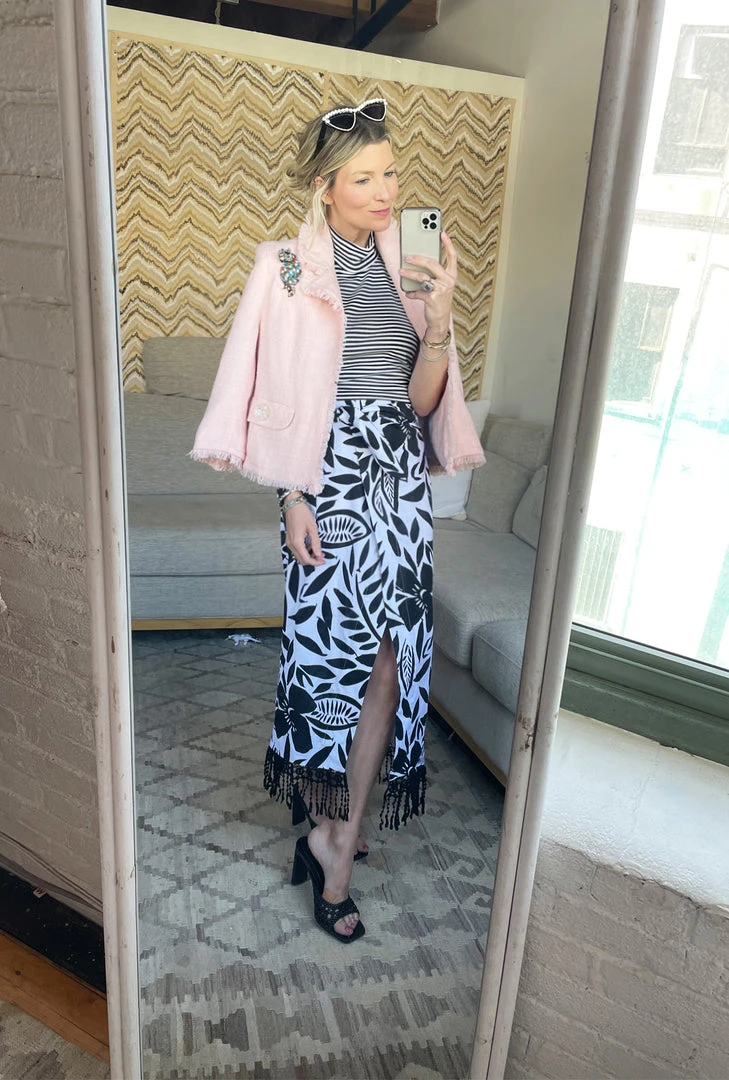 Size XS measures 27″ at the waist, 32″ from waist to hem (37″ to the end of fringe)