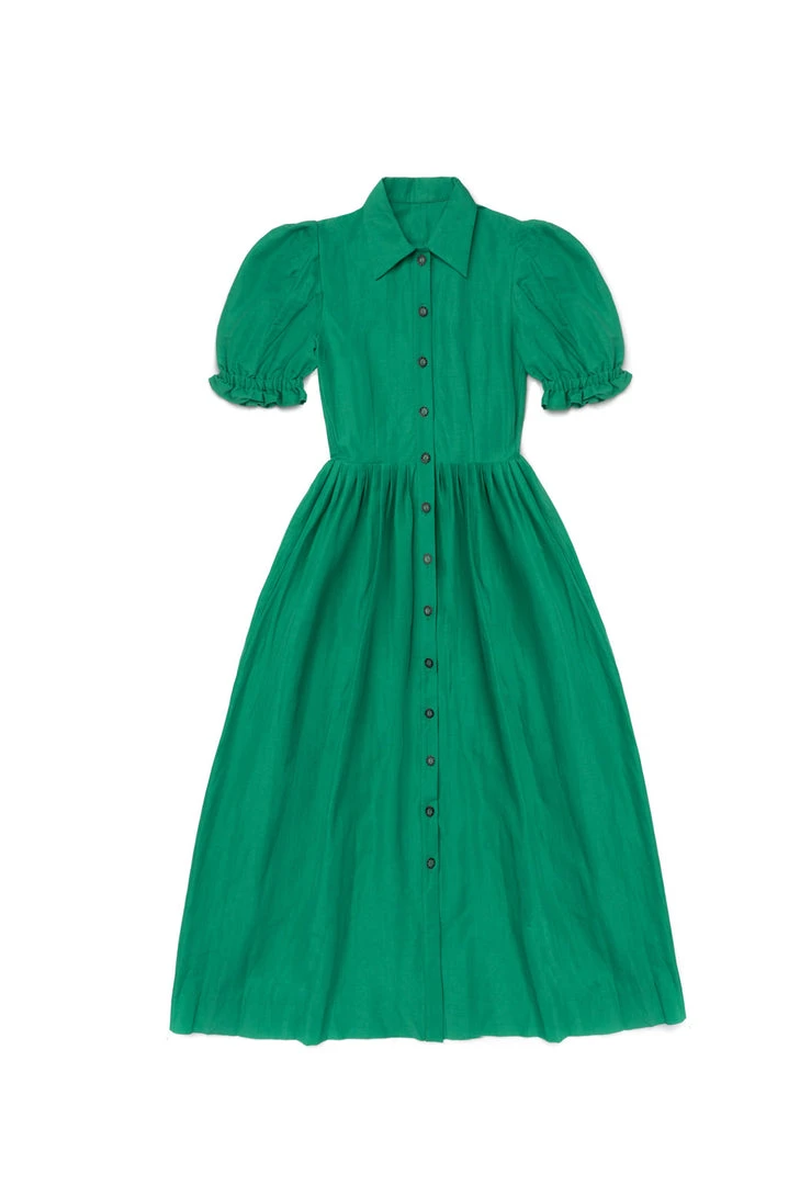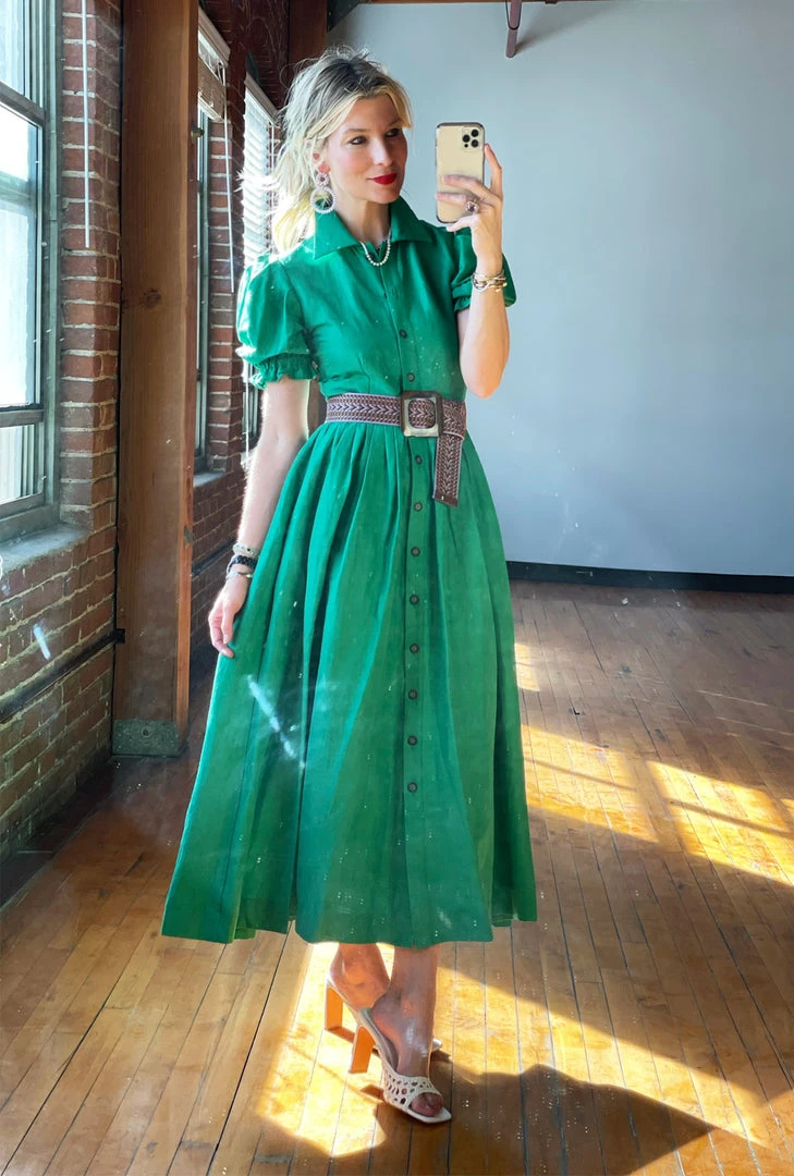 There is just something special about spring green! Add in a classic shirtdress silhouette, a pretty puff sleeve and a soft, stretch crepe that feels fantastic when you wear it and you get a year-round dress, appropriate for every occasion you can think of. St. Patrick’s Day parade? Duh. Spring Luncheon? Obviously. Summer wedding? You bet. Holiday frock? 100%.
