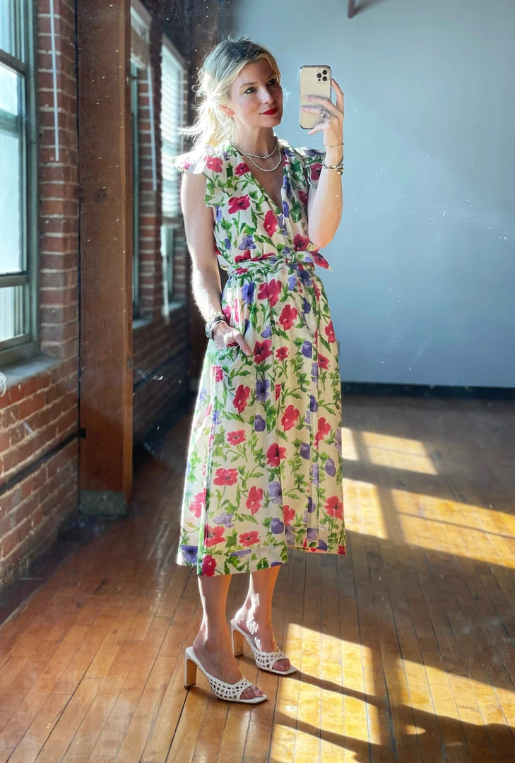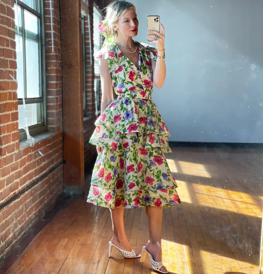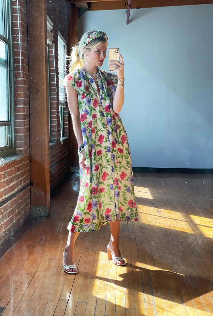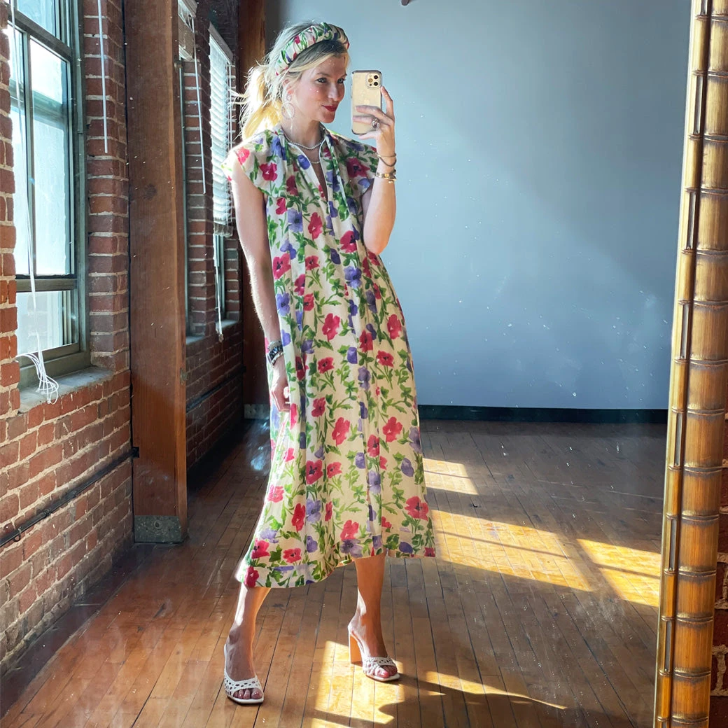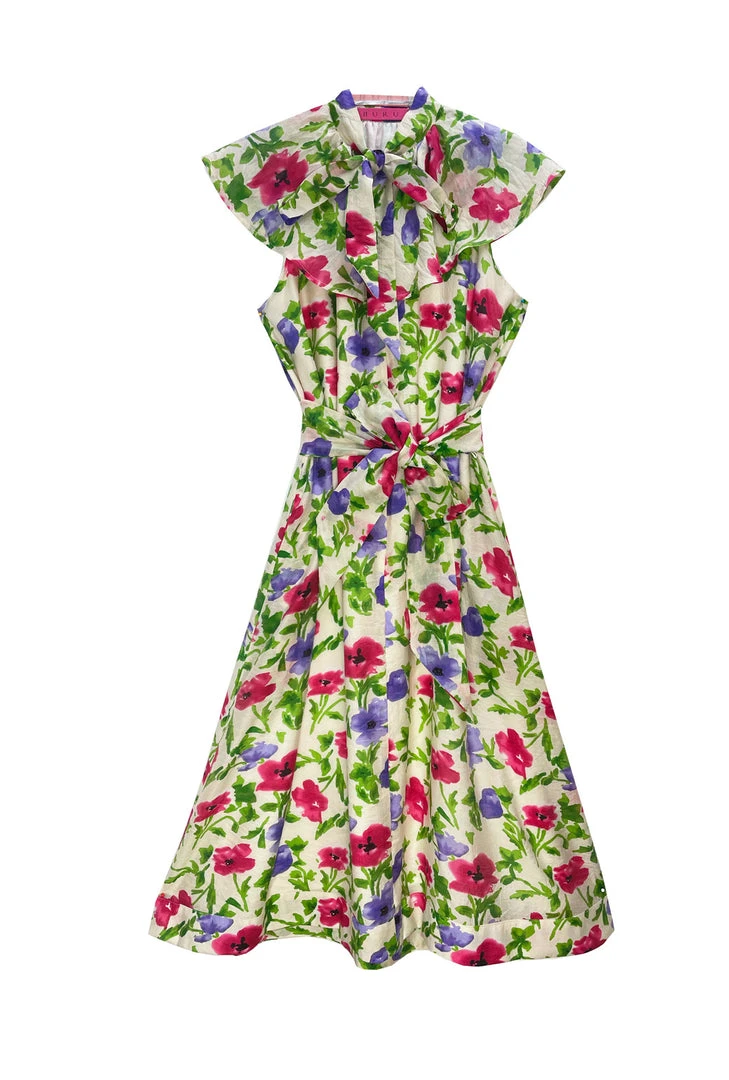 She’s flirty. She’s breezy. She’s versatile. Our Ruffle Collar Midi Dress checks a lot of boxes. Tie the bow in the front for a “buttoned-up”, lady like look or flip the ruffles inside (pull them under the armholes) and unzip her for a more “go with the flow” vibe. Use the self-tie belt when you need a more sophisticated silhouette or go loosey-goosey on home summer days at home or by the water.