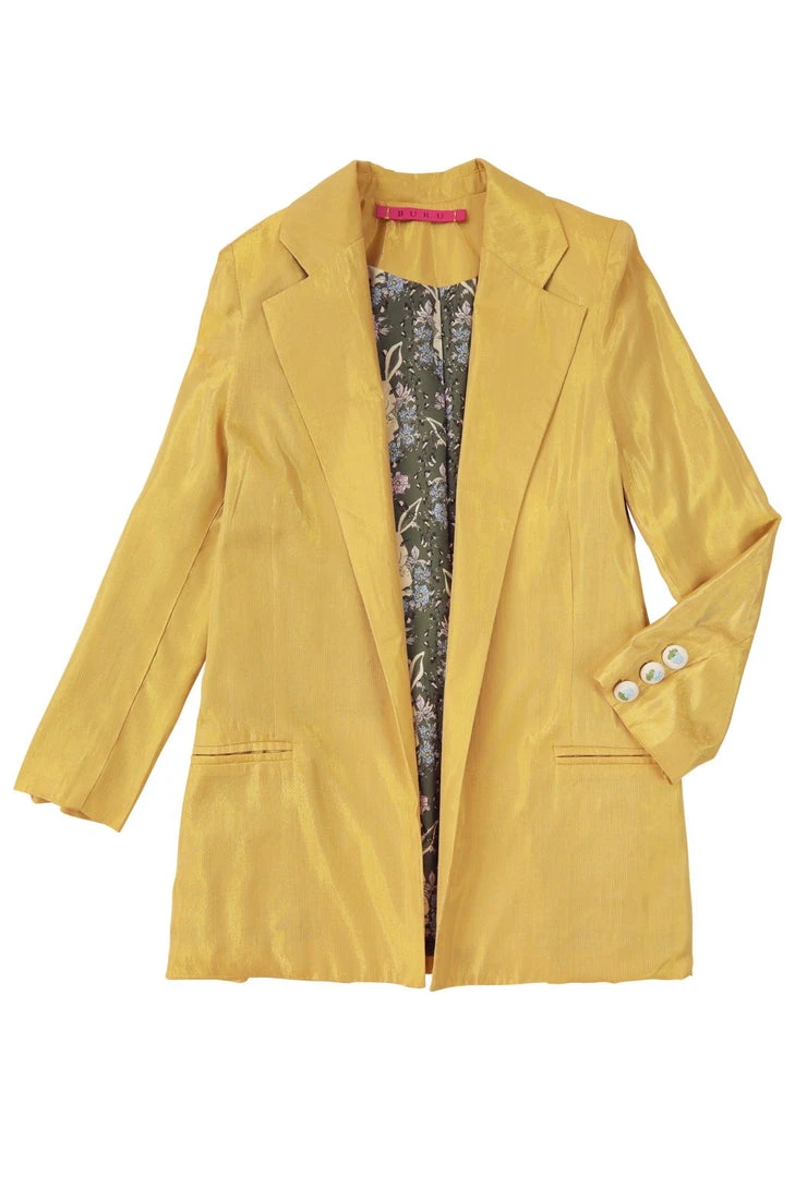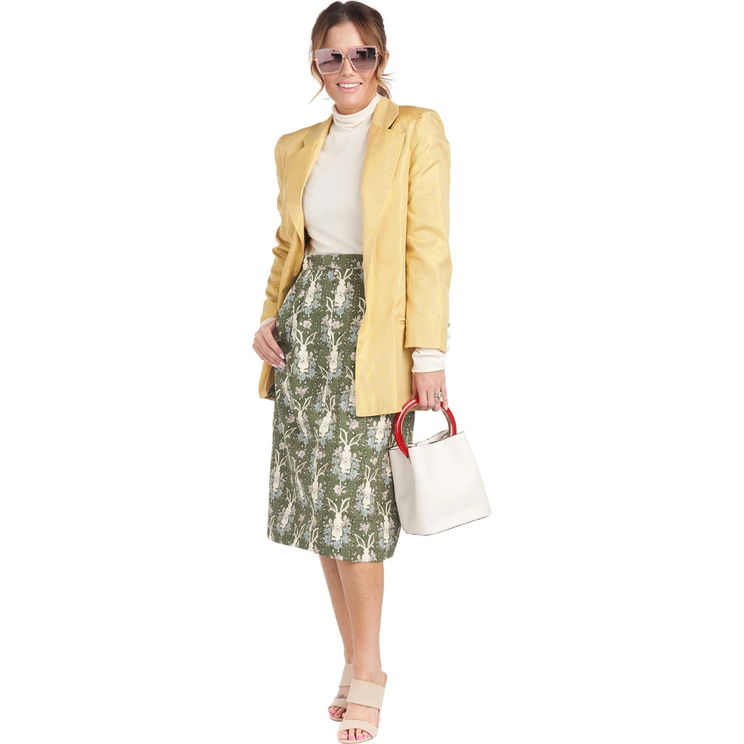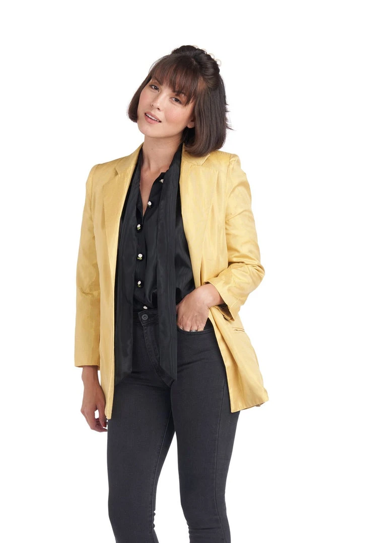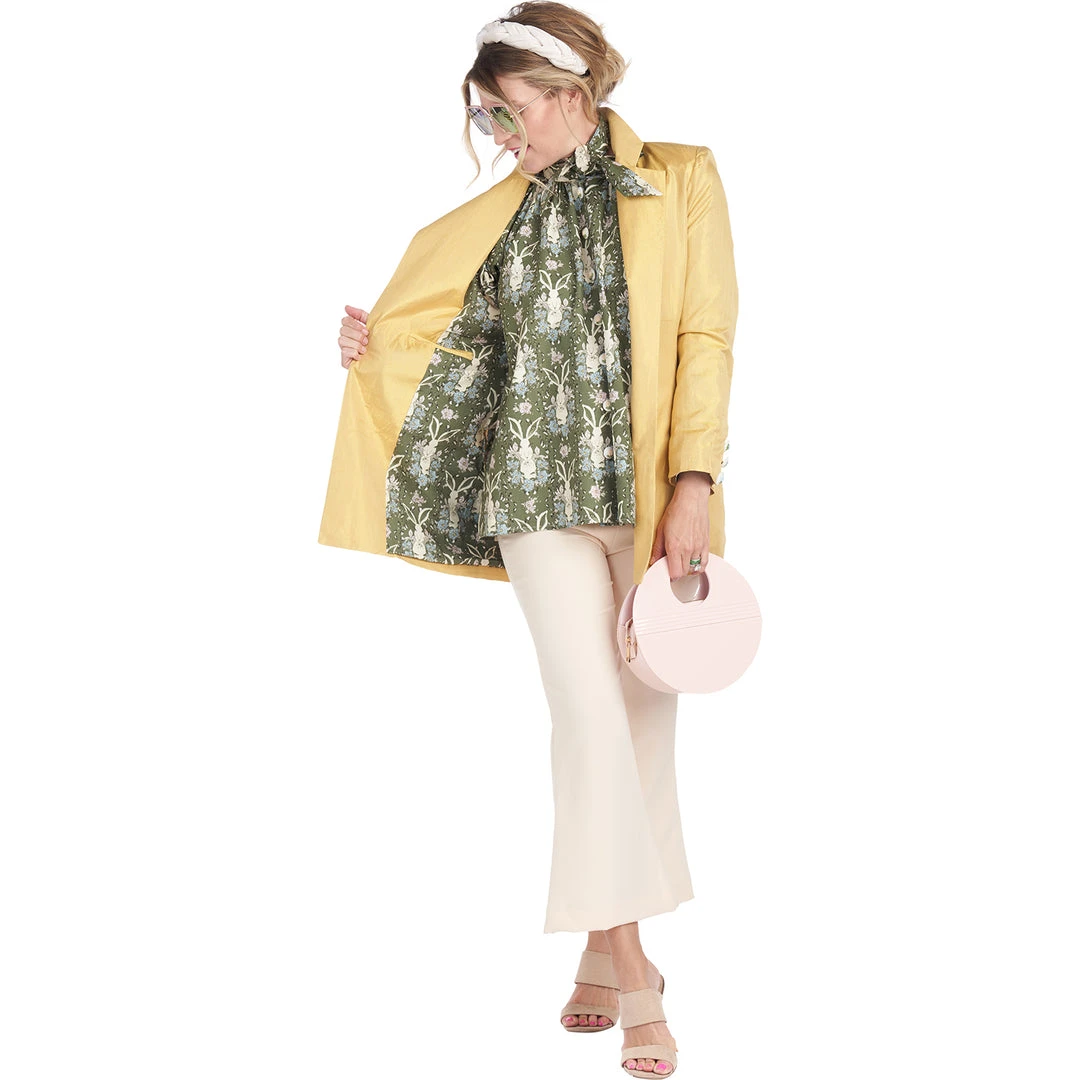 A chic, yet easy throw-on blazer can be a mama’s best wardrobe trick. A quick way to feel pulled together in an instant, our lightweight cotton gold lamè, Open Front Blazer, with gentle shoulder pads, creates a soft, yet structured look. The gold cotton adds a pop of shimmer, perfect for the holiday season. And who can resist a bunny print lining!?