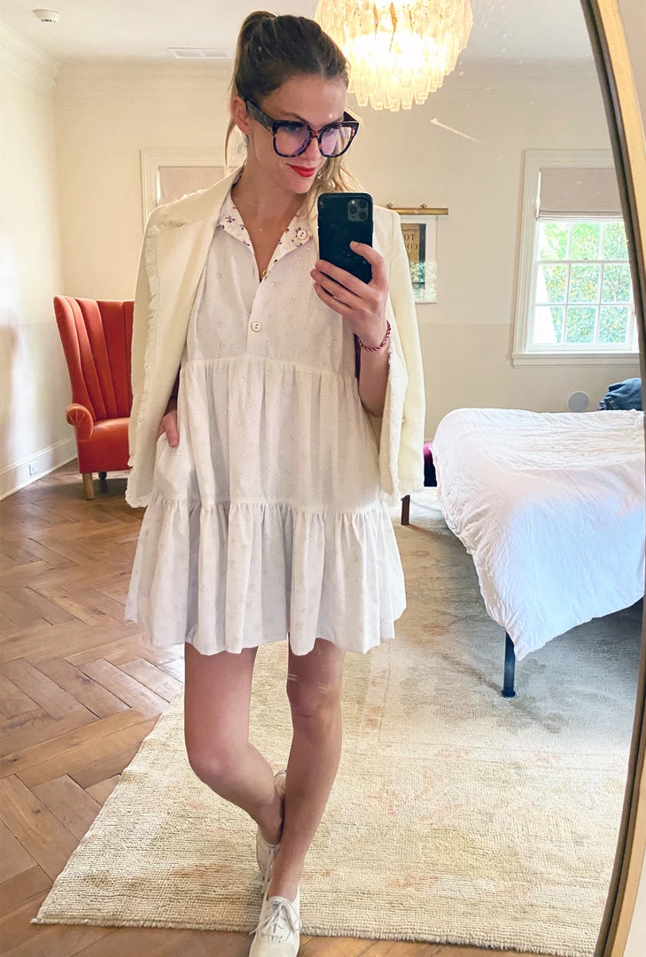 Two looks in one? Sign us up! Our Sleeveless Tiered Mini Dress is 100% reversible! That’s right. You buy one dress and you literally get TWO. On one side you have a beautiful textured white cotton and on the other a sweet blue and orange micro-floral. Even better, you have pockets on both sides and she’s machine washable (delicate cold). Please line dry.