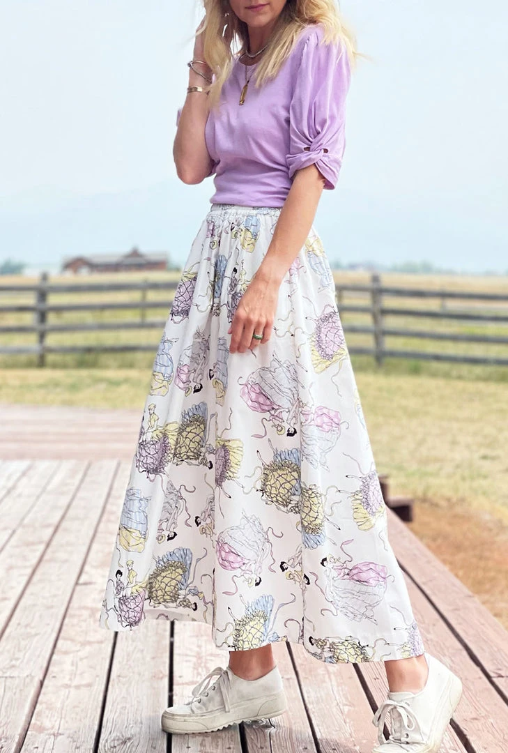 I suppose if we can’t all jet off to Paris in the springtime, then the least we can do is drape ourselves in a whimsy La Tour Eiffel print. At first glance, this classic circle skirt appears to be a colorful abstract print, but as you look closer, you’ll discover magical scenes of ladies in ballgowns dancing around The Eiffel Tower. We aren’t going to claim this skirt can solve the world’s problems, but it might just transport you to your dream getaway…even if just for a moment.