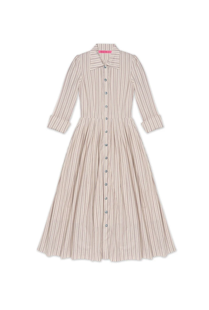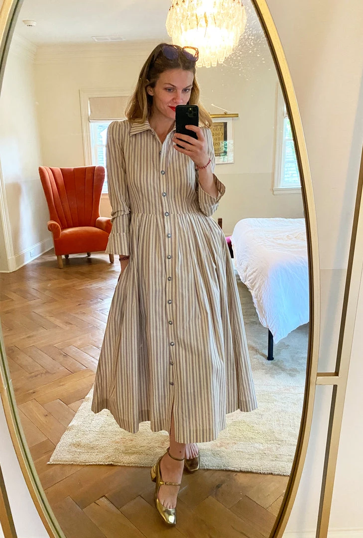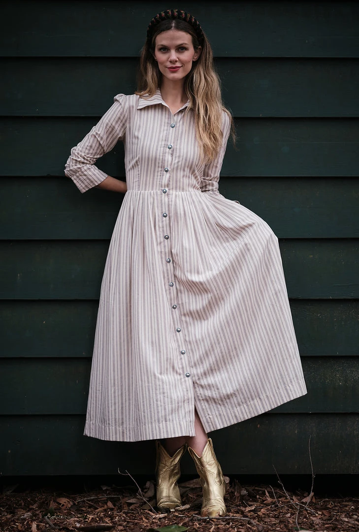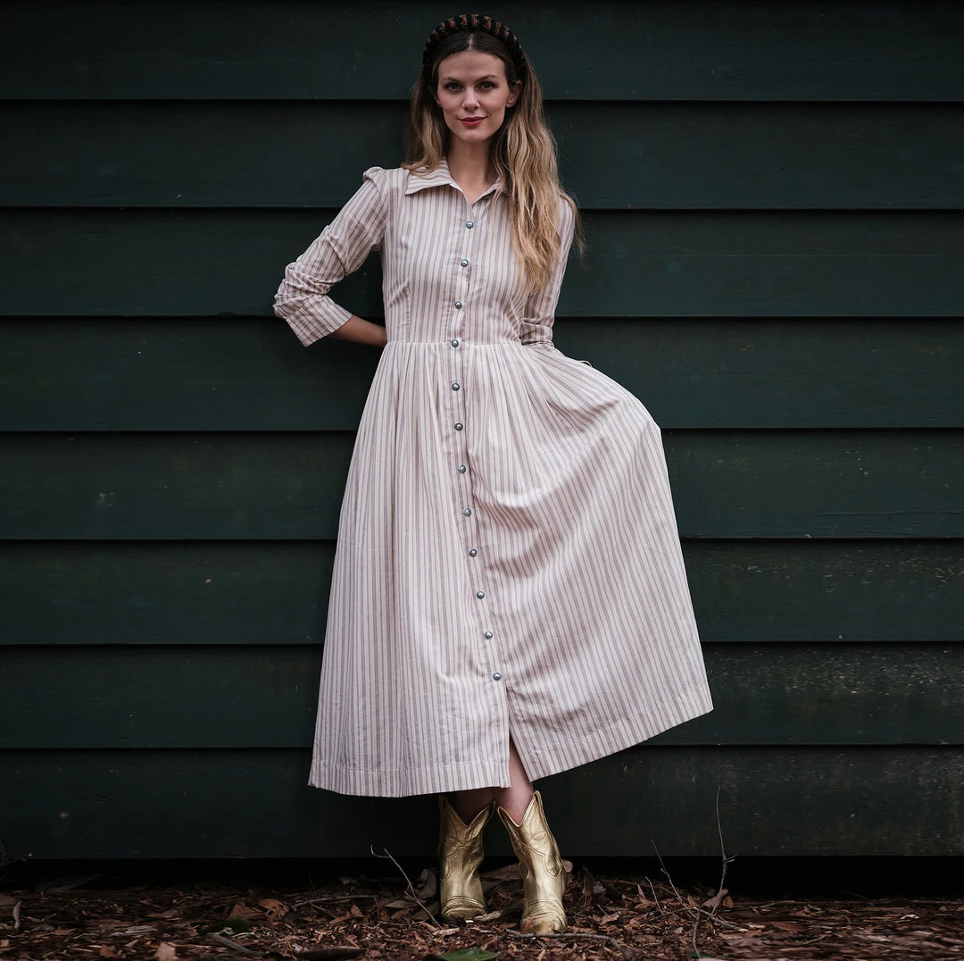 It wouldn’t be a BURU launch without a new shirtdress… or two. Created in a perfectly transitional and season-less (and machine washable!) fabric, this dress is as functional as it is fashionable. Beautiful vintage buttons pair perfectly with the whimsy ivory ticking stripes.