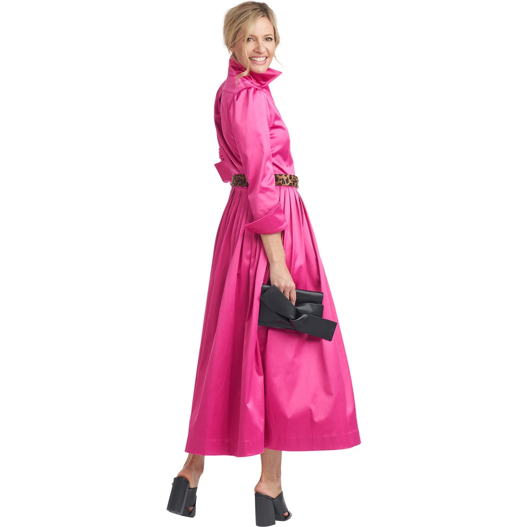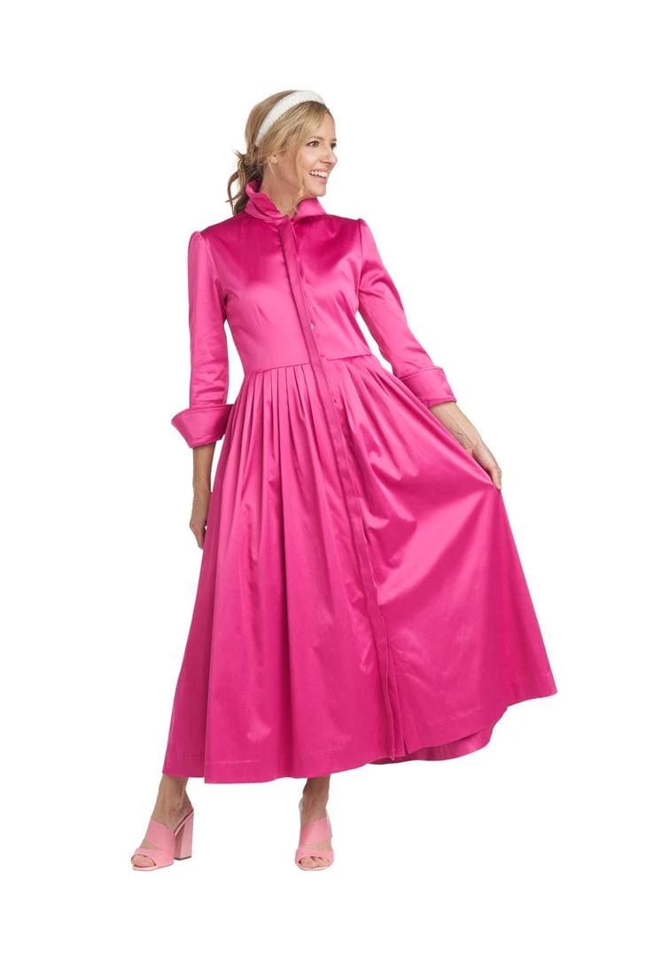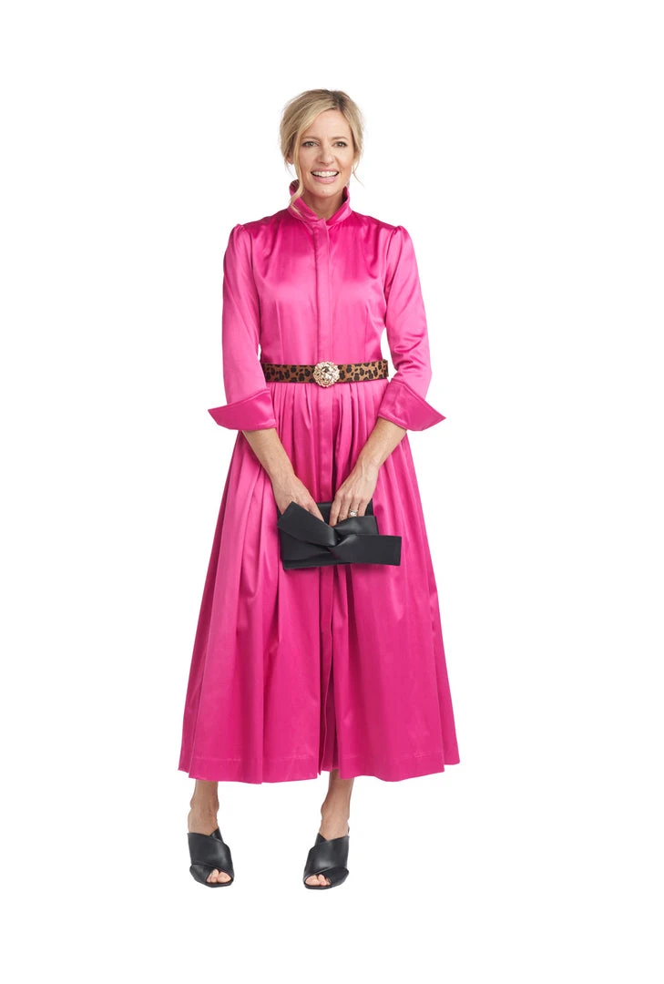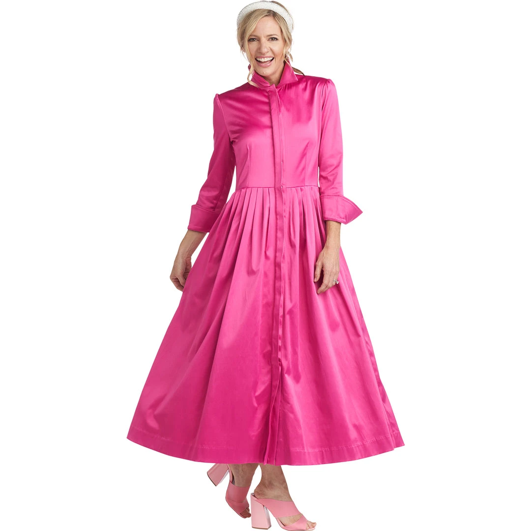 A classic silhouette in pink cotton sateen makes quite a statement! Updated with a full button front placket to make getting dressed easier (we really do listen to you!) and a slight puff sleeve, our long sleeve Shirtdress is a perfect throw on & wow through all the seasons. Dress it down with sneakers for running around town or keep it elegant with heels for a day out with your daughter.