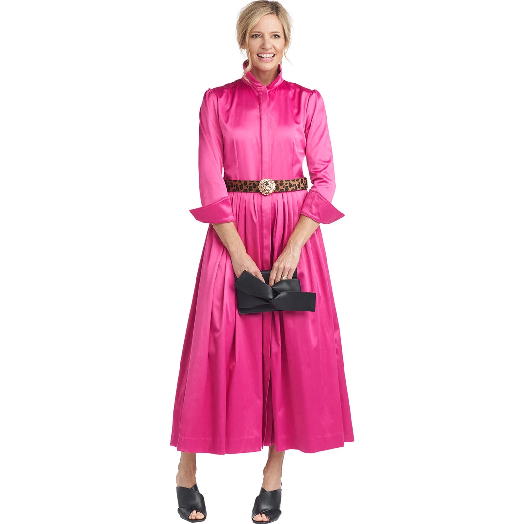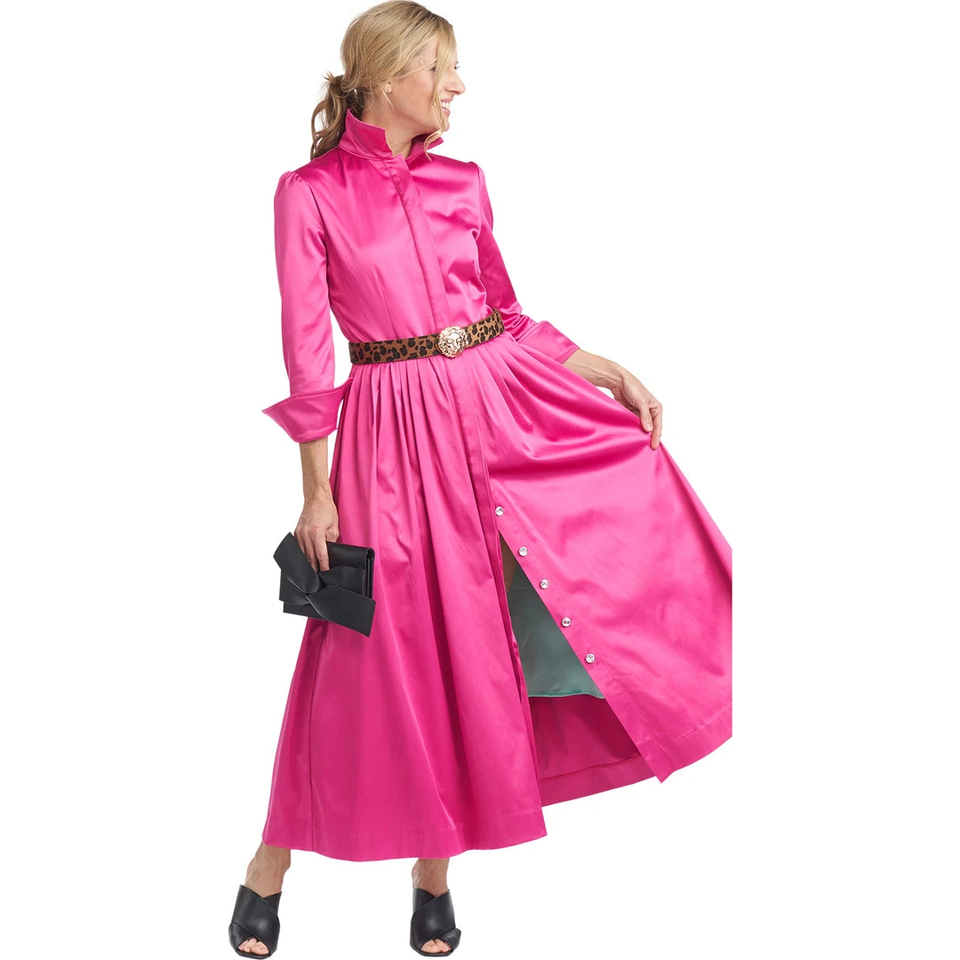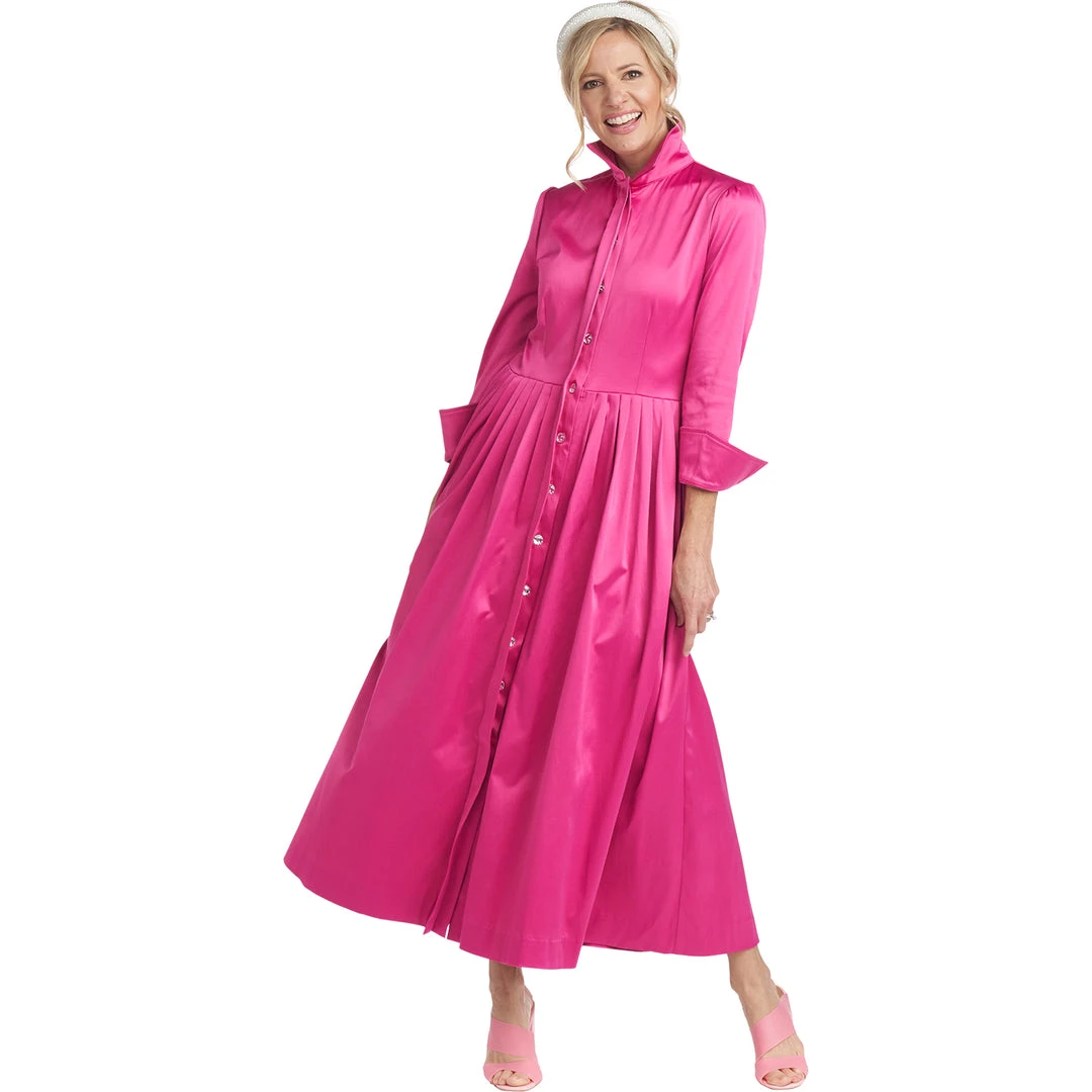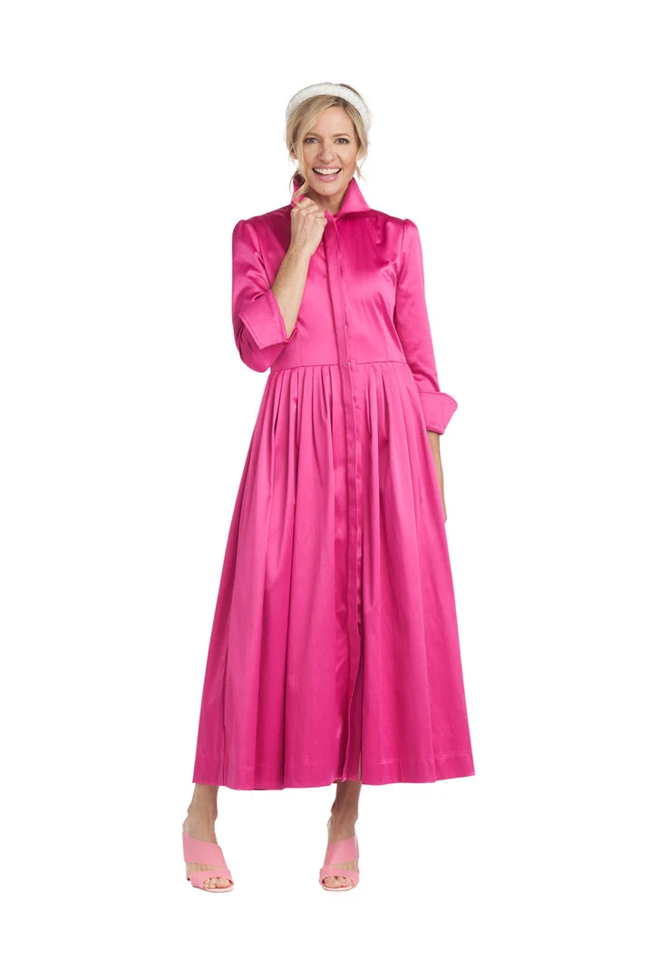 A classic silhouette in pink cotton sateen makes quite a statement! Updated with a full button front placket to make getting dressed easier (we really do listen to you!) and a slight puff sleeve, our long sleeve Shirtdress is a perfect throw on & wow through all the seasons. Dress it down with sneakers for running around town or keep it elegant with heels for a day out with your daughter.