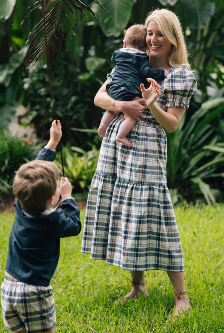 Is there anything cuter than baby thighs in a diaper cover? We think not. Add on the “mama’s boy” embroidery, in a classic link ivory stitching, and you’ve got the cutest baby bottom in town! Perfect for coordinating family style, we love this diaper cover paired with either of our Nat Note Peter Pan Shirts and the made for mom looks in plaids or stripes.