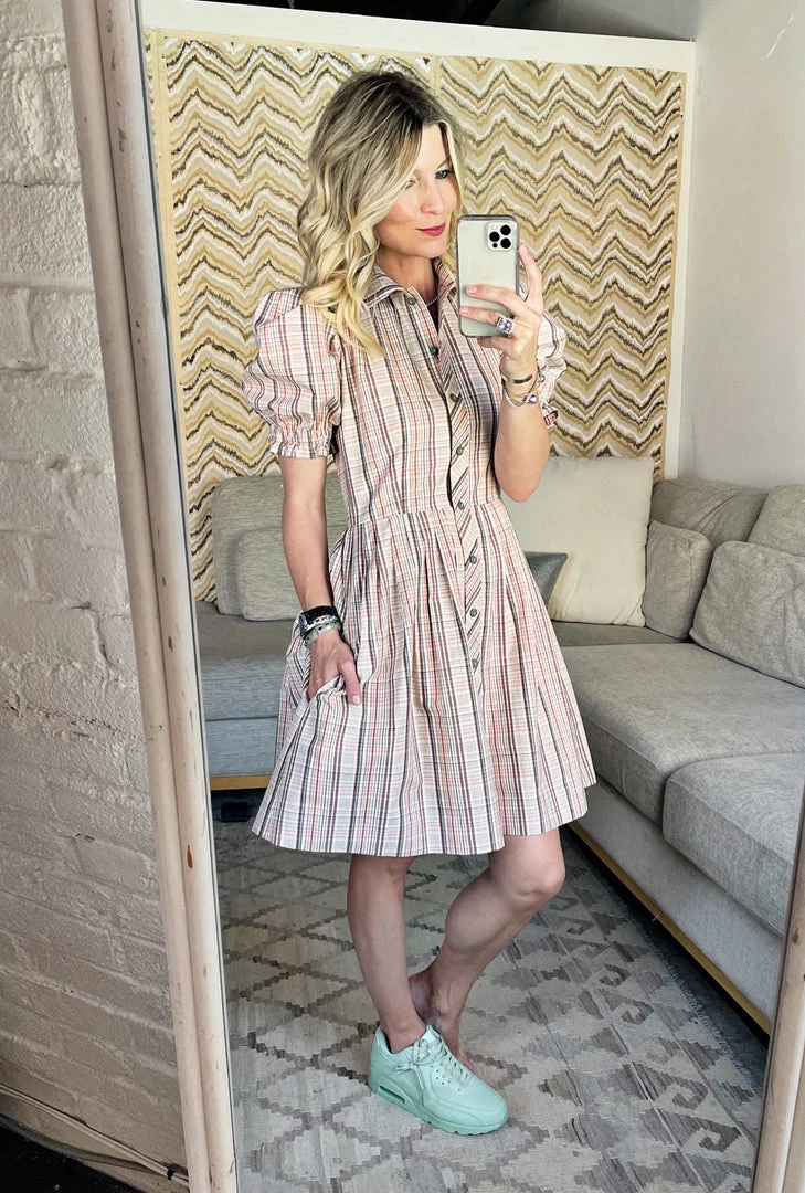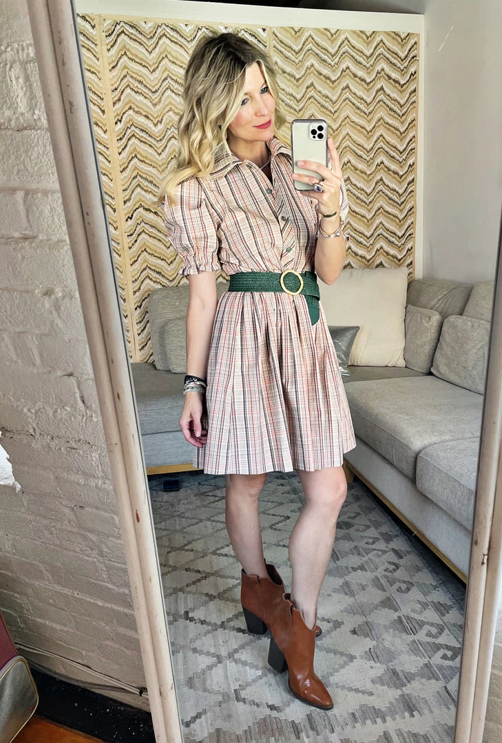 Giving us all the Donna Read vibes, except this dress does NOT expect you to stay in the kitchen all day. This dress, though nostalgic in style, is designed to let you do whatever you want, mama. A fresh new length, with the hemline falling above the knee, this washable frock (WITH POCKETS) is a one, done and out the door. Style her with sneakers or add a belt a boots to give her a western vibe.