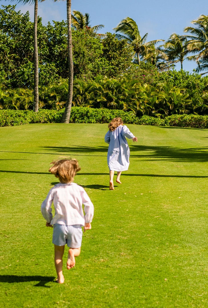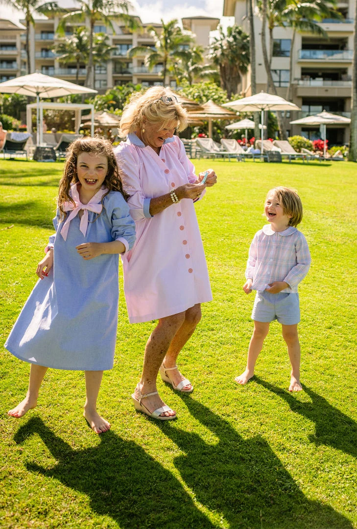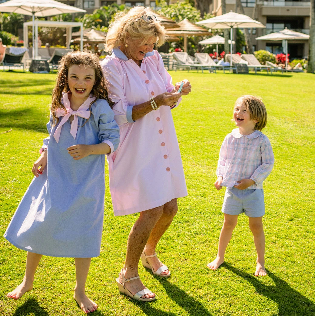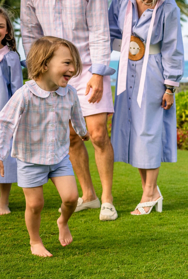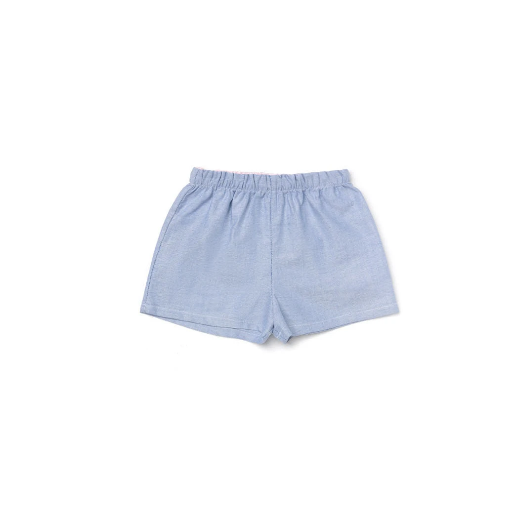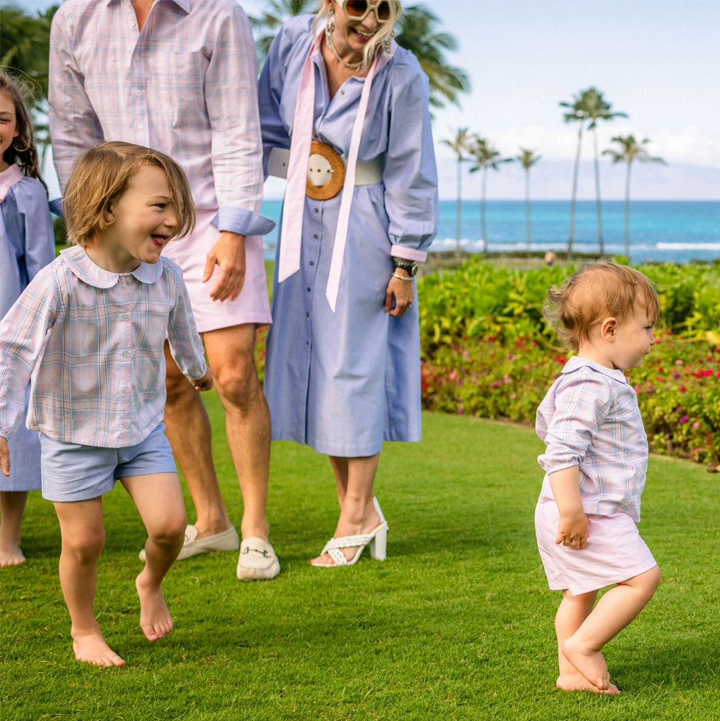 Is there anything cuter than little ones showing a little leg? Mamas and minis alike will love these comfortable, elastic waist shorts with a shorter inseam. Added bonus these shorts are fully reversible for two looks (blue and pink) in one! Perfect for coordinating family style