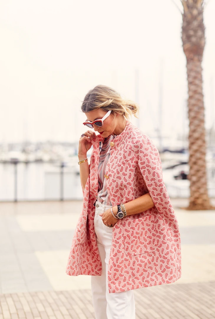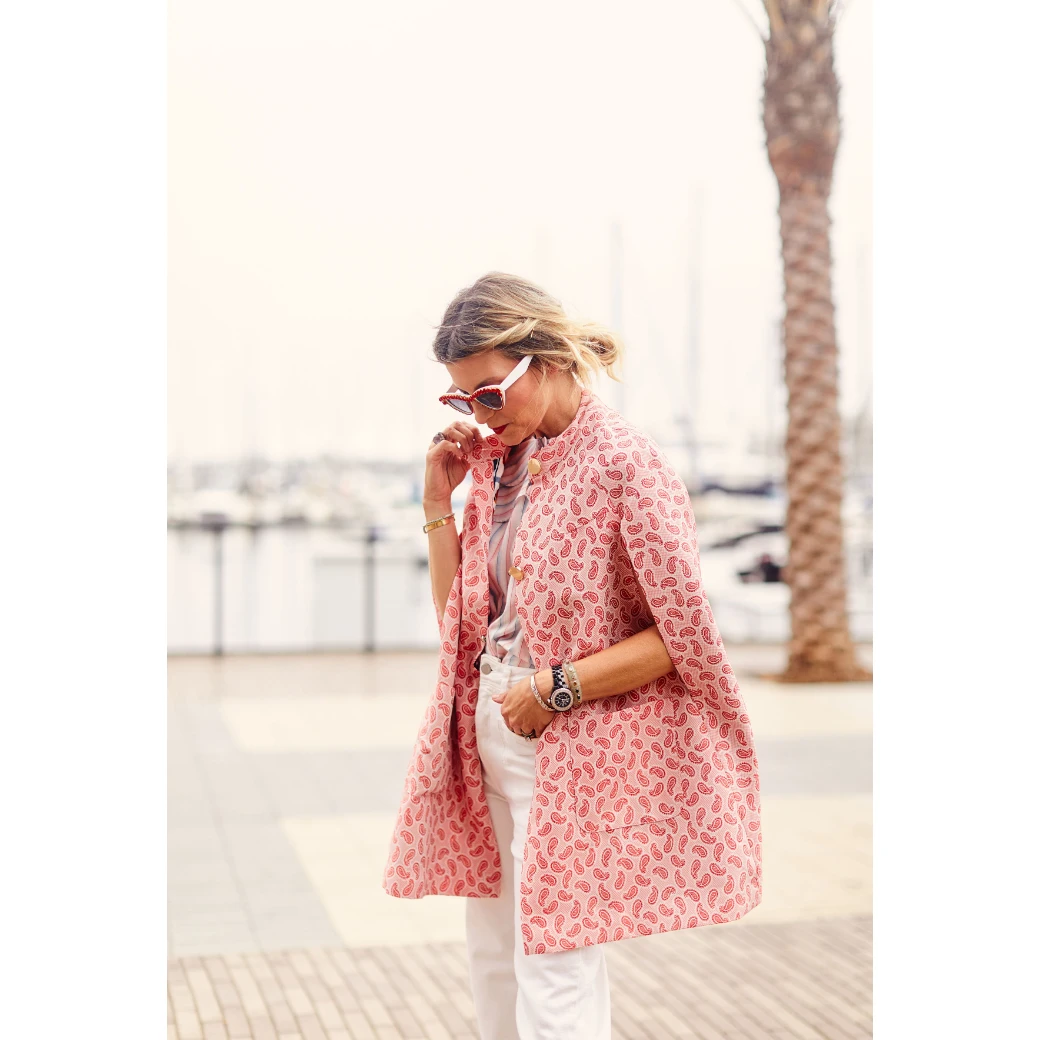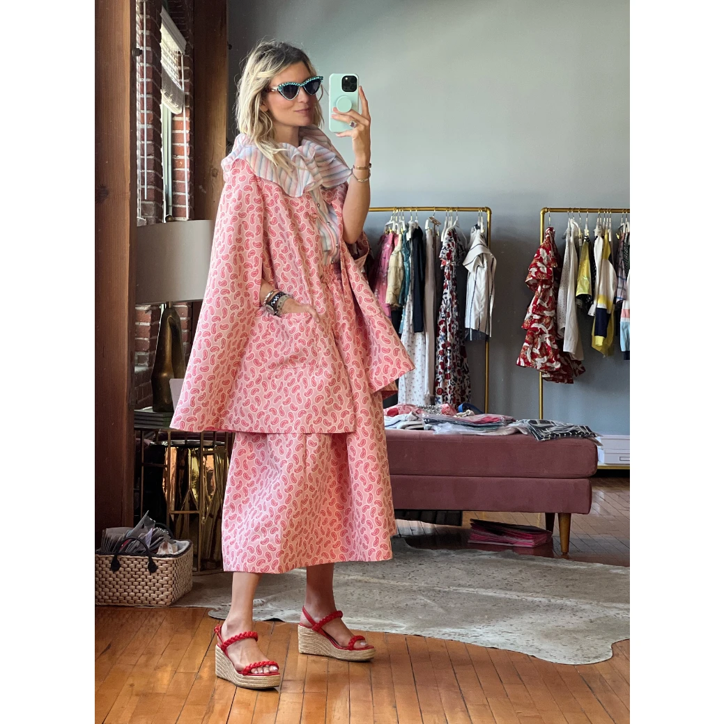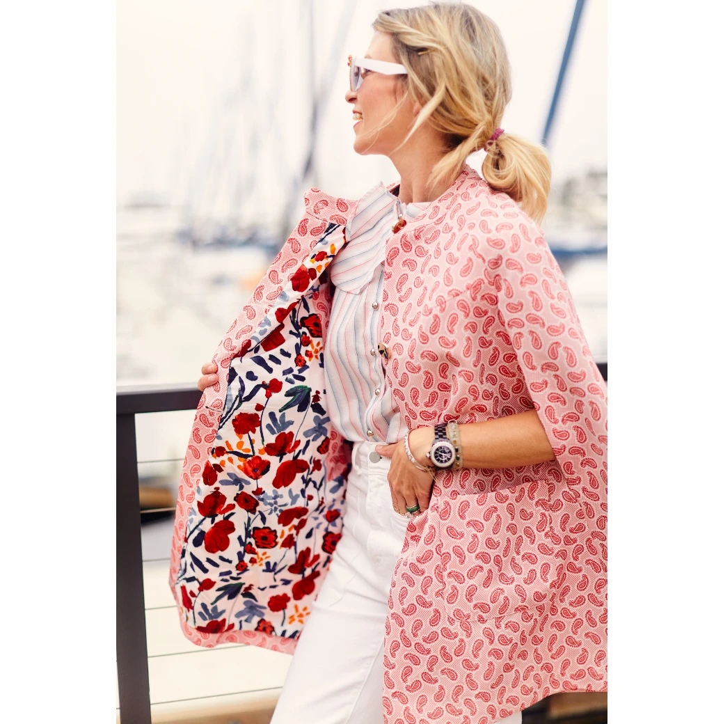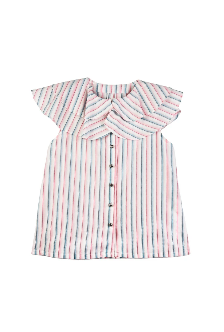Why have one ruffle…when you can have two? This darling red, white, blue and pink stripe print pairs perfecting with your favorite denim for everyday mom life. We also love her styled up for the 4th of July with our Red Paisley Skirt & Mod Top Set. Super lightweight cotton and ideal for hot summer days.