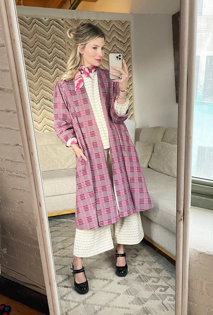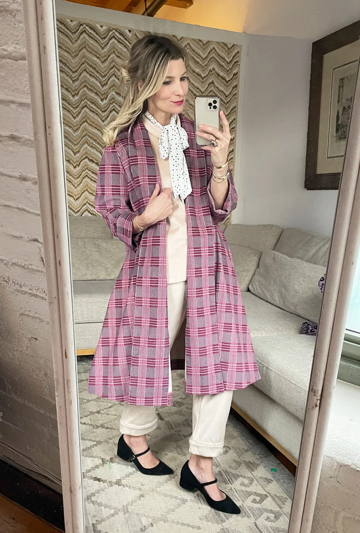 An everyday statement piece, this pink plaid Swing Coat in soft brushed corduroy adds a touch of class to your most basic #momstyle. Throw it on over your favorite jeans and a t-shirt to feel like the ultimate cool mom at school pick-up or pop it on over your favorite fall knit set (aka our ivory dot set!)