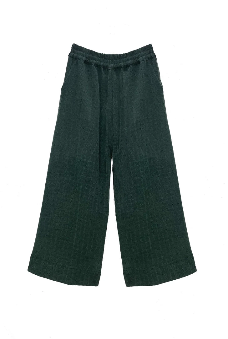 The perfect blend of “lounge” meets “real pants”—these cropped, wide leg trousers, in a buttery soft waffle textured textile are the ideal pants to re-enter society. A flexible elastic waist, a perfectly washable fabric and pockets to boot; these trousers check all the boxes. Pair them with their matching top for a luxe loungewear look that dreams are made of.