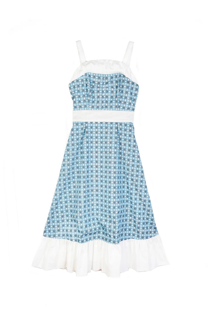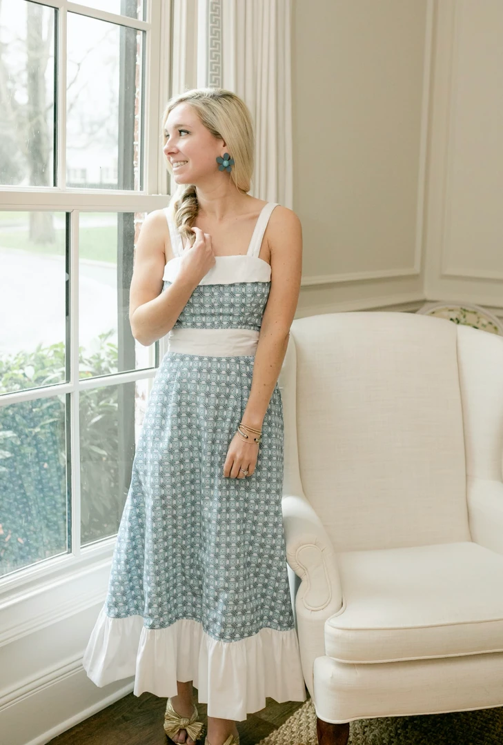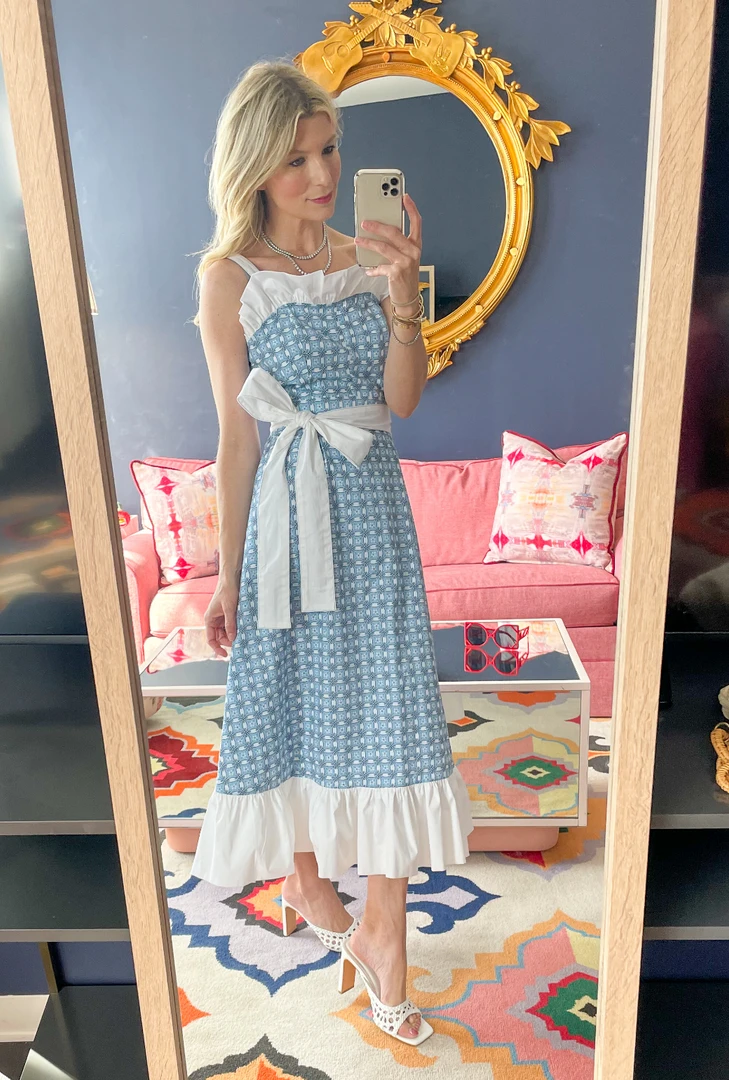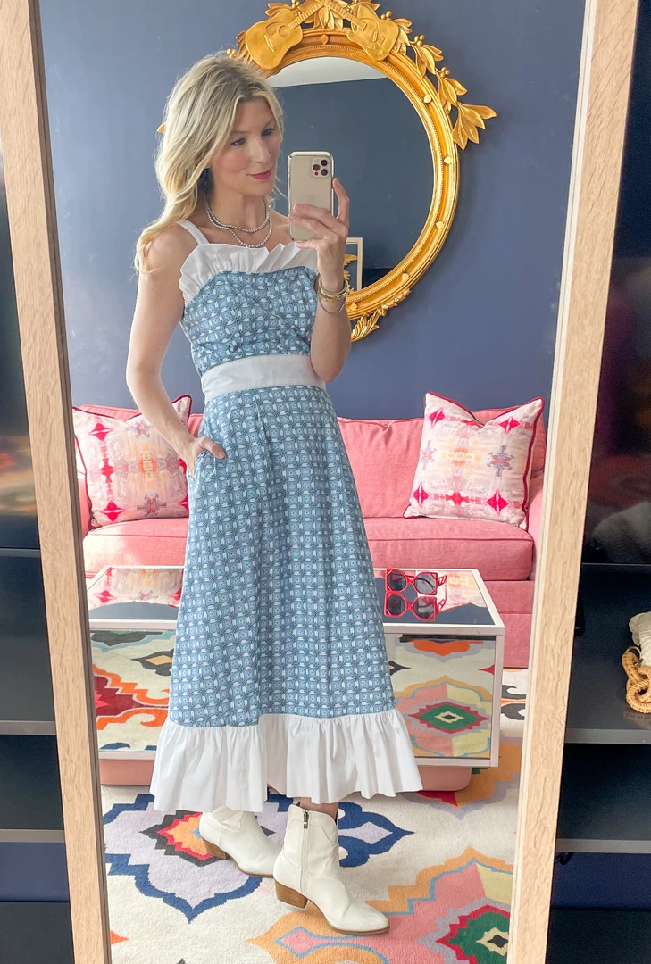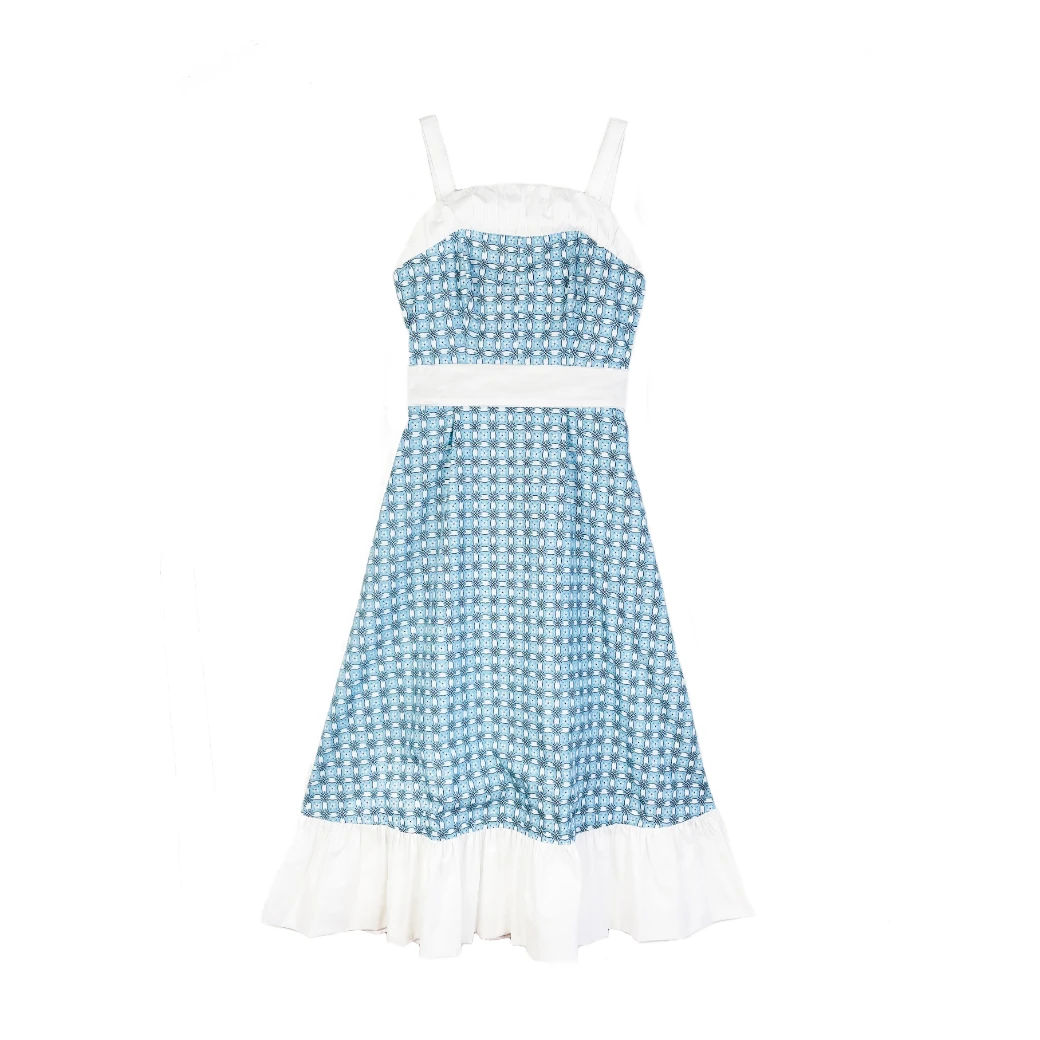 A brand new BURU silhouette, the Button Top Sundress is flirty, fun and fantastically comfortable. An elastic waist back allows for a flexible fit. Multiple button holes in the straps allow easy adjustments or criss-crossing the back OR you can remove the straps all together. Fully lined with big pockets, this 100% cotton poplin dress is all the ruffled crispness you didn’t know you needed this spring.