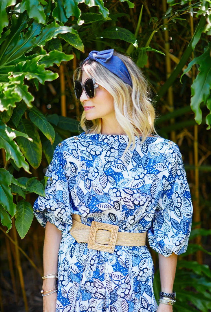 We are absolutely head over heels in love with this silhouette and we think you will fall fast, too! Featuring buttons down both sleeves, allowing for countless style options + easy access to nurse if needed—it’s easily dressed up or down for any occasion, from grocery store runs to Saturday mornings on the soccer field to dance recitals. We love this, gauzy cotton in a classic blue leaves print.