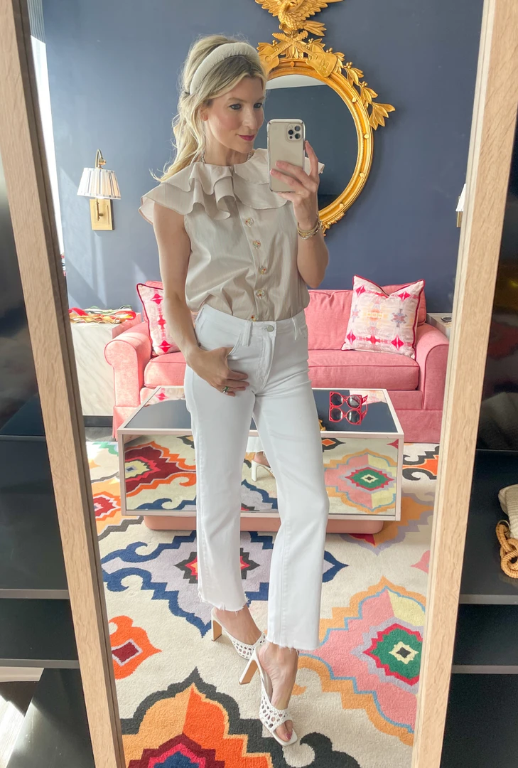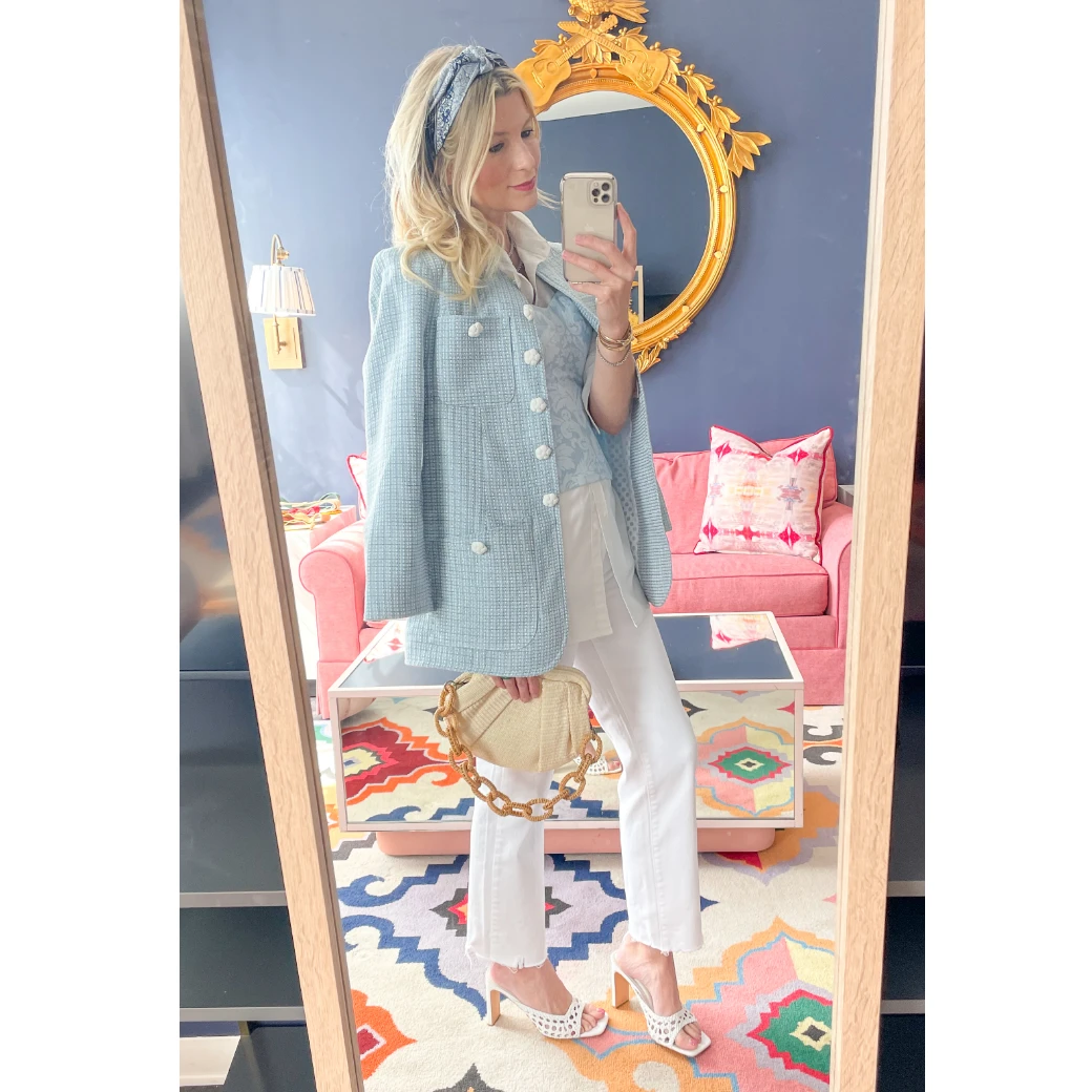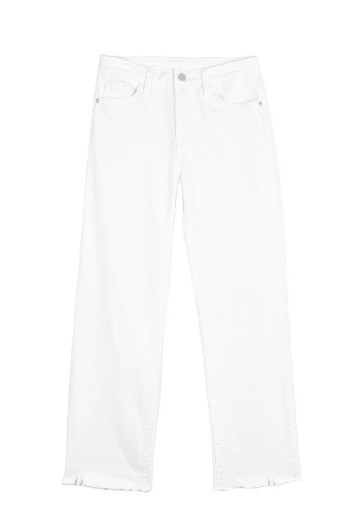 In need of some fresh, bright white jeans? These classic straight leg, cropped jeans, with just a touch of distressing in the raw hem are a great, everyday pair. We love them styled with our newest BURU x Hunter Blake Walking Blazer in blue tweed for an elevated, but easy to throw on & go look.