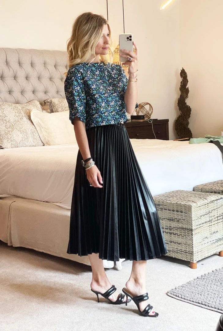 We love the high rise pant and skirt trend happening, but sometimes it’s hard to find the right top to pair with them. Enter the Mom Crop. Our Black Miro Floral Mom Crop was designed to pair perfectly with our Smocked Waist Skirt in either Mini or Midi lengths as well as countless other high rise styles! Its slightly boxy fit is forgiving, its longer, slim sleeve is super flattering and the longer back length offers more coverage when bending over to pick up littles.