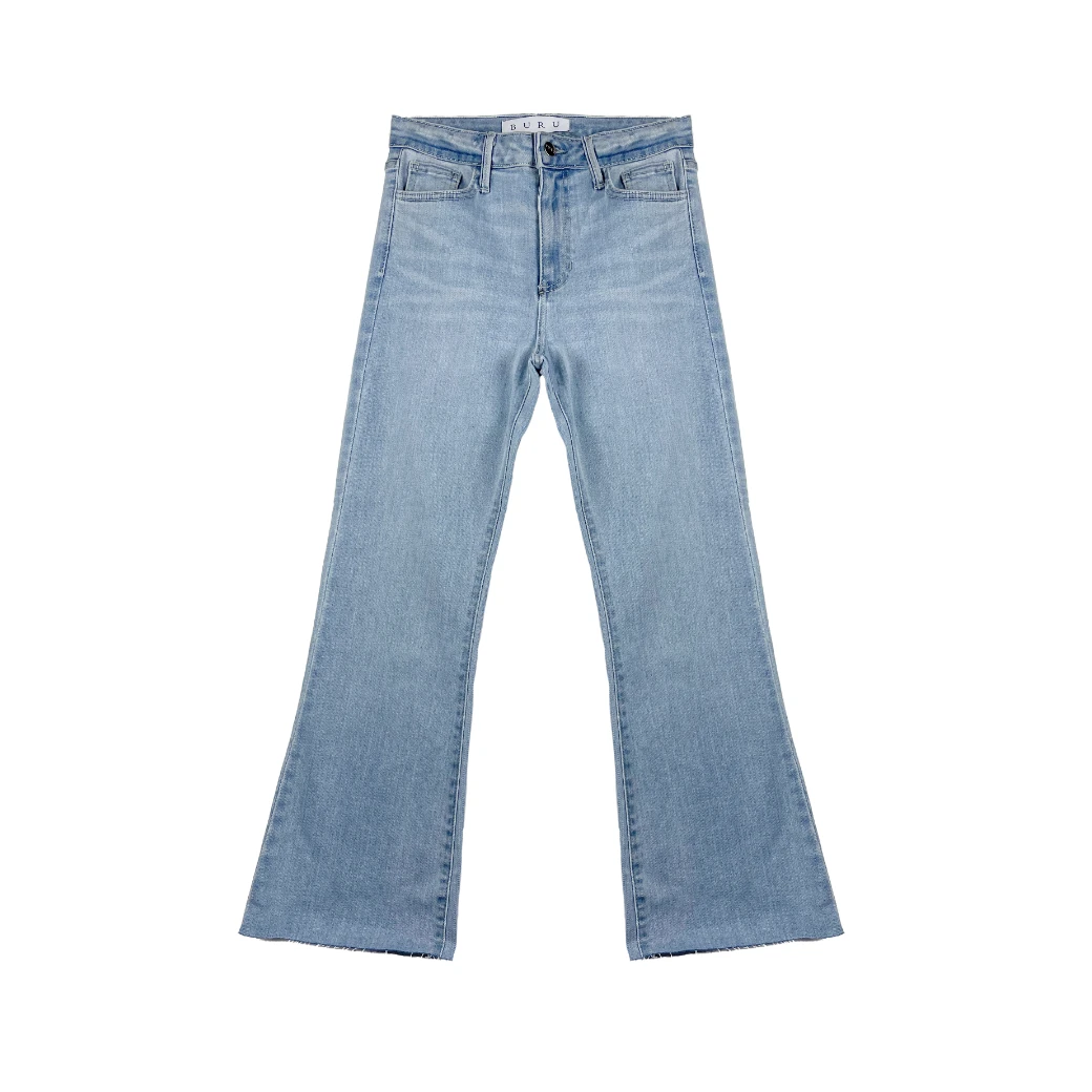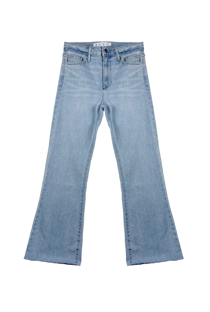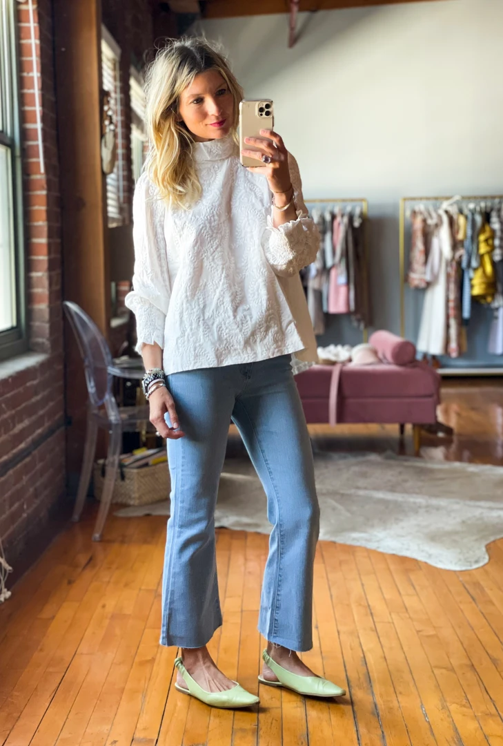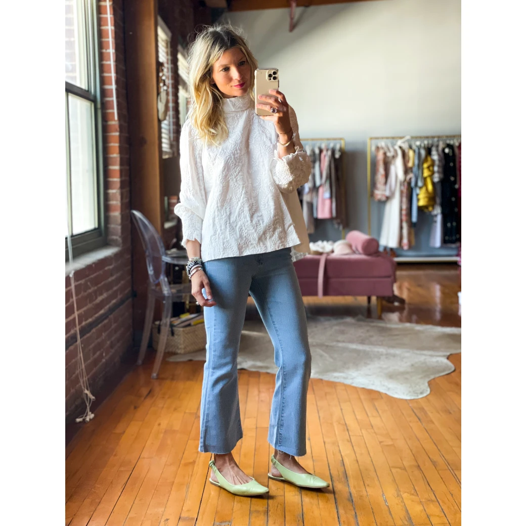 Having you been waiting for the perfect “summer wash” denim? Well you just found her. With a raw edge (for easy self “hemming”), these cropped flares, in a light wash were meant for walking barefoot in your backyard with glass of something cold in your hand. But they’re just as cute dressed up with a heeled sandal and a pretty top!