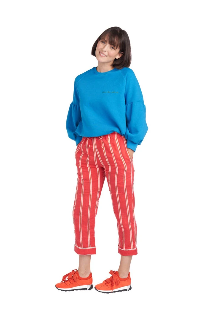 Who says pajamas are only meant for lounging around the house? Certainly not us! Sold separately from the matching top–because let’s face it, not all of us wear the same size on the top and bottom–the opportunities for these pants to shine are endless! Pair them with a sweatshirt and a killer pair of kicks for running errands and chasing your minis around the playground.This vibrant red shade sends us back to those magical fall days as kids picking apples at an apple orchard. And, of course, they have pockets! Comfort meets style meets functionality. You can’t really go wrong, can you?