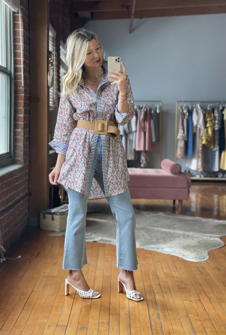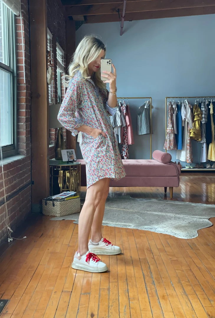 When you all show love for something—we listen. Which is why we created our best-selling Boyfriend Shirtdress in a new slimmer fit in a timeless micro-floral and stripe combo. Though very similar to the original cut, this version as less volume in the bodice. If you have been sizing down in the original silhouette, then we recommend your true size in this version. OR, if you prefer the true oversized look, then size up.