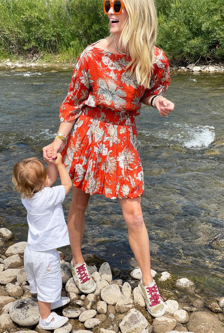 This easy pull-on mini skirt, with a flirty fit and lots of flare, is a closet staple. Fully lined, with pockets, and a gauzy cotton-blend fabric—you’ll love styling her for carpool with sneakers or with her matching button sleeve top for a head-to-toe fall floral look, perfect for date night or a family dinner.