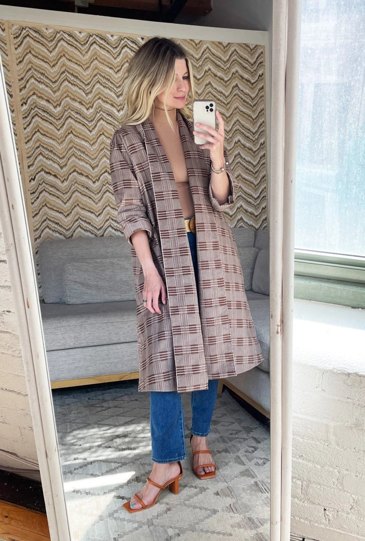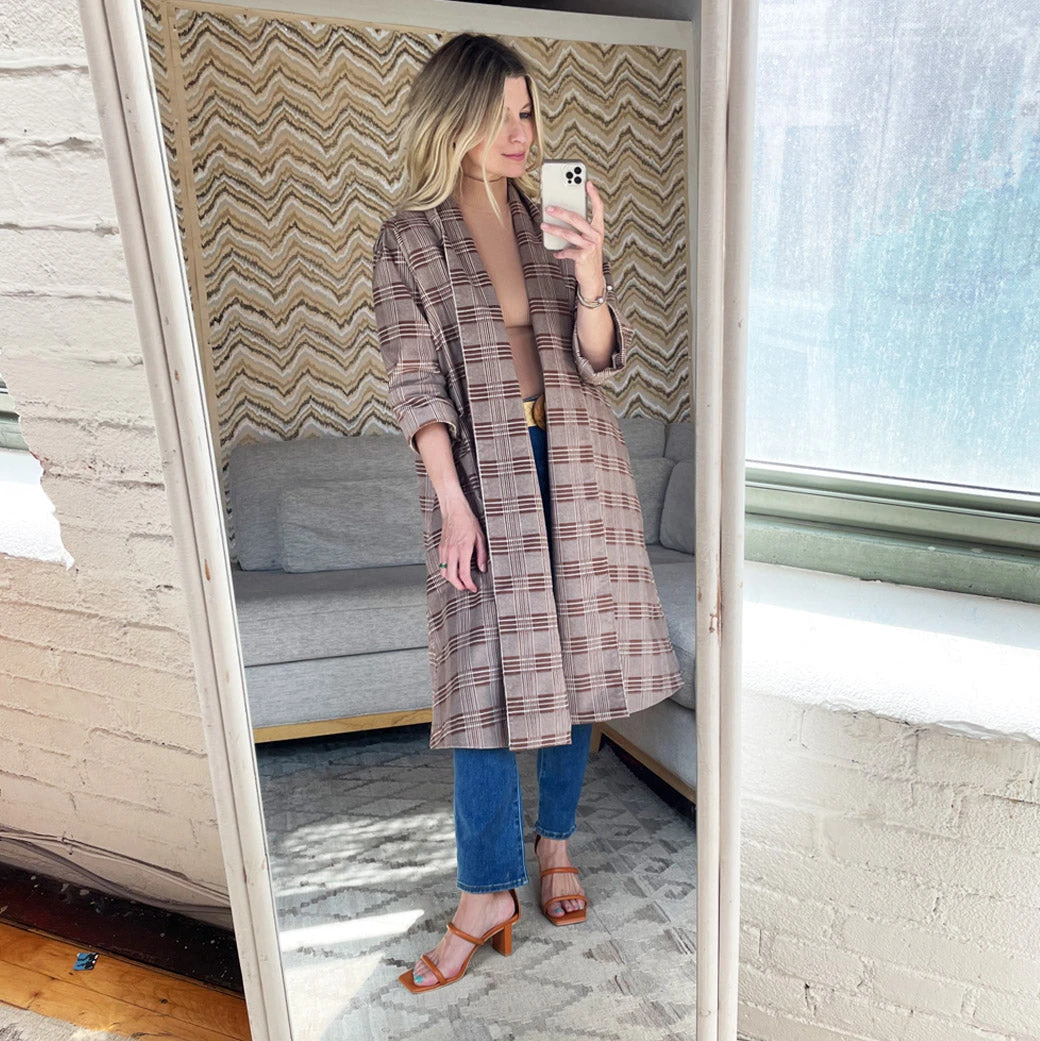 Sizing notes: Morgan is wearing a 25 in this image and Instagram try-on. She can also wear the 26 for a looser fit, but the 25 offers a bit more “mum tum” support.
