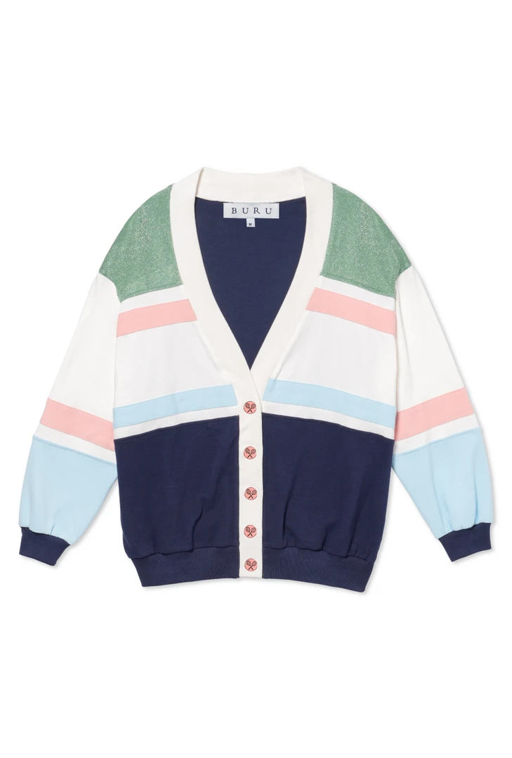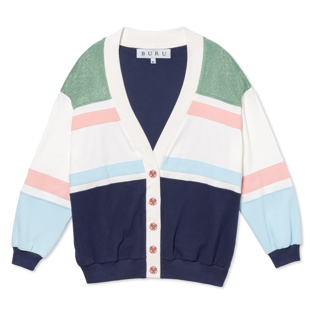 After constantly searching for an easy, lightweight topper to take us from court to carpool, we decided to make one ourselves! Made of super soft, jersey knit in classic color block fashion—our Tennis Cardigan is the layering piece you’ve been looking for. Toss it on over your sports top & tennis skirt after you leave the court. Or add it to your easy, everyday style when you need that extra piece. And don’t miss the enameled, BURU Tennis Buttons!