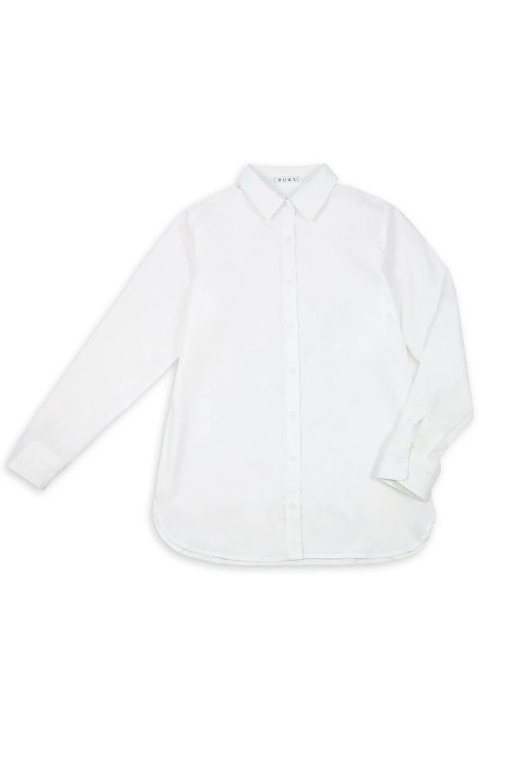 One important BURU motto: a mama can never have too many white shirts! The Timeless Button Down, in crisp 100% cotton offers a man shirt style with a female silhouette. Nipped at the waist enough to give it shape without feeling confined—this elegant shirt pairs with ball skirts, joggers, jeans, chambray shorts, ruffled midi skirts and even leggings (dare we say!). Bottom line—we’re not sure how you’ve been getting dressed without it. Size S measures 33″ from shoulder to hem.