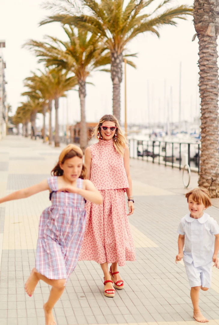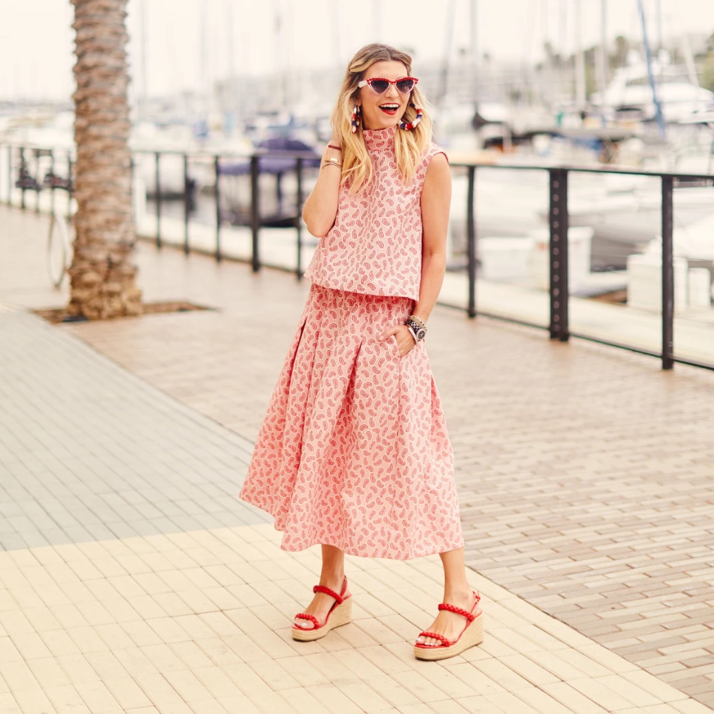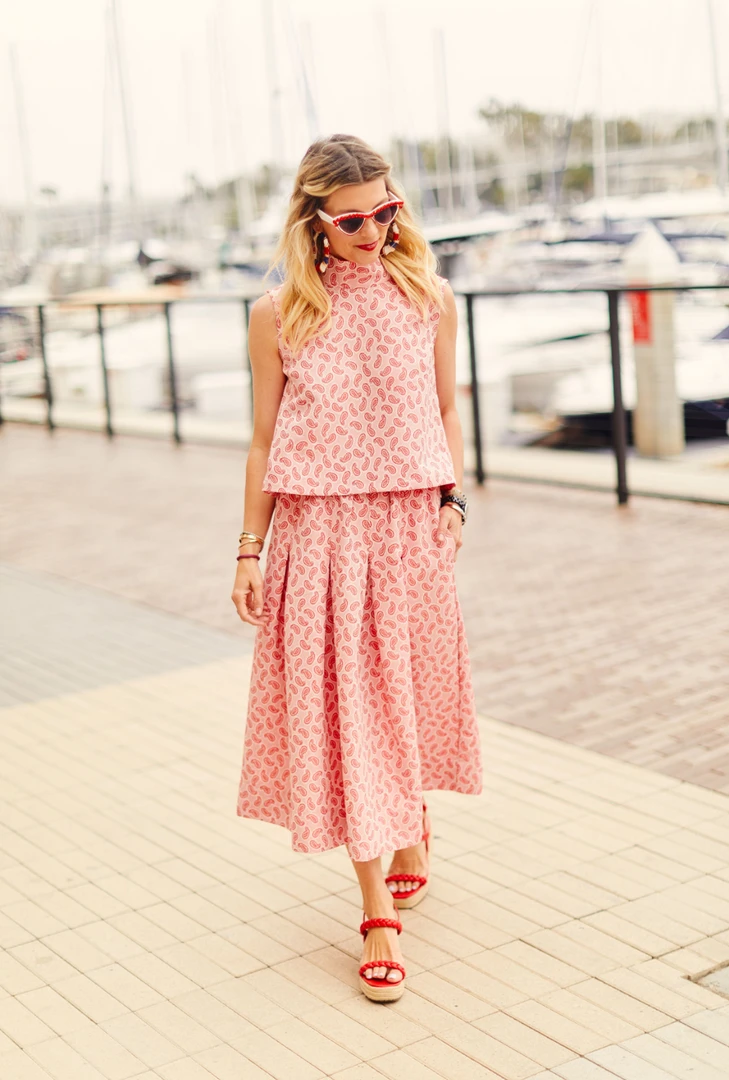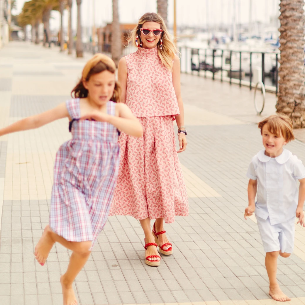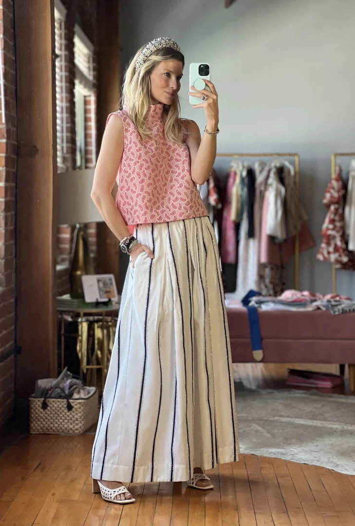 A fresh take on our sleeveless Mod Top—our new cropped version is perfect for pairing with its matching skirt and your favorite high rise denim. The year-round weight Paisley textile is ideal for transitioning through the seasons. Style it for a festive Fourth of July with some blue and white accessories or dress it up for the holidays with a little green and some sparkles.