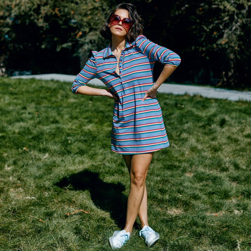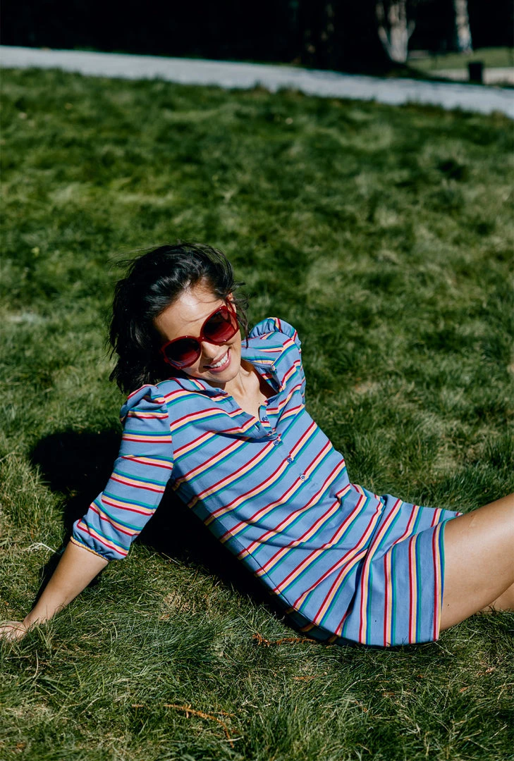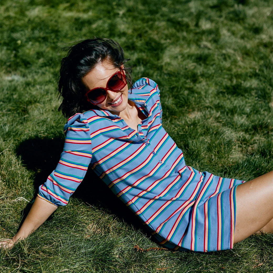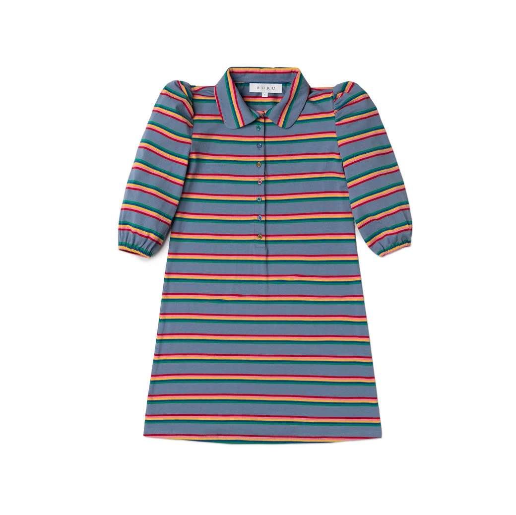 The t-shirt dress—to know her is to love her. This one is no exception…but she’s equipped with a BURU twist. She has lovely puff sleeves, rainbow colored buttons and pockets…of course. Throw her on to run errands around town, to pop in to 8 different sporting events or to lounge at home with the family after a crazy busy week. One thing is for sure, you’re not going to regret buying this dress. She’ll never sit on the bench.