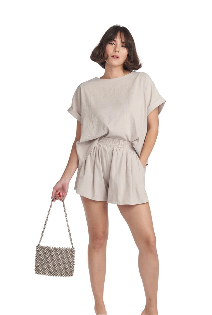 Get ’em while it’s hot! Our Everyday Shorts in sand are the perfect piece to transition from spring to summer. Pair them with the matching box top for an easy “set” or throw them on with a long sleeve tee and a colorful trench coat when it’s cool during the mornings and nights, yet still hot during the day.