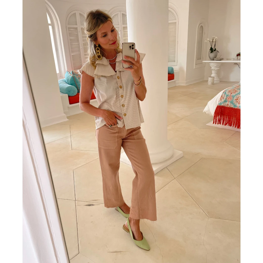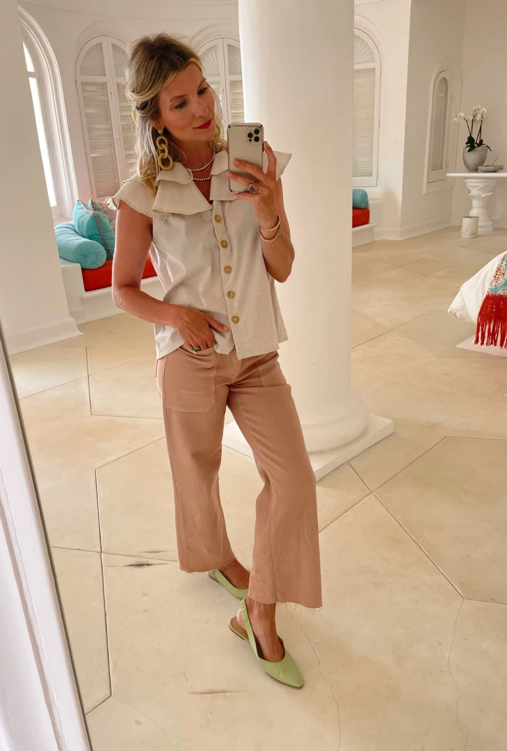 They’re not just regular mom jeans; they’re cool mom jeans. These terra-cotta colored beauties are perfect for the throw-on-and-go lifestyle. Lunch meeting in 10 minutes? Dress them up with a swing coat and heels and get out the door! Sitting on the bleachers during little league? Pop on your favorite tee and sneakers and cheer your littles on while looking fab.