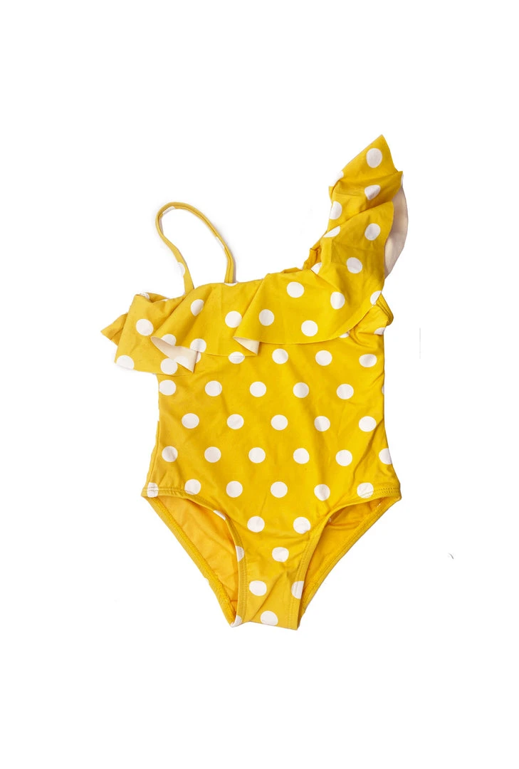 Looking for a fun mommy + mini look for your spring break beach trip or possibly to play in the hose in your back yard? It is 2021 after all…wink wink. This simple polka dot number, with a coordinating mom suit is just what you need! Classic in cut and print, this one piece is perfect for your little lady. Runs true to size.