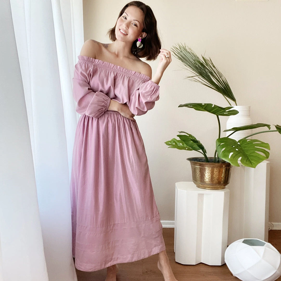 She’s comfortable, she’s stylish, she’s your new favorite throw-on-and-go dress! Made of lightweight washable, pink lurex cotton—the styling possibilities are endless. Pair it with fun espadrilles for date night, or throw on a denim jacket and your favorite sneakers for a casual day out. Wear it on or off the shoulder for different looks.