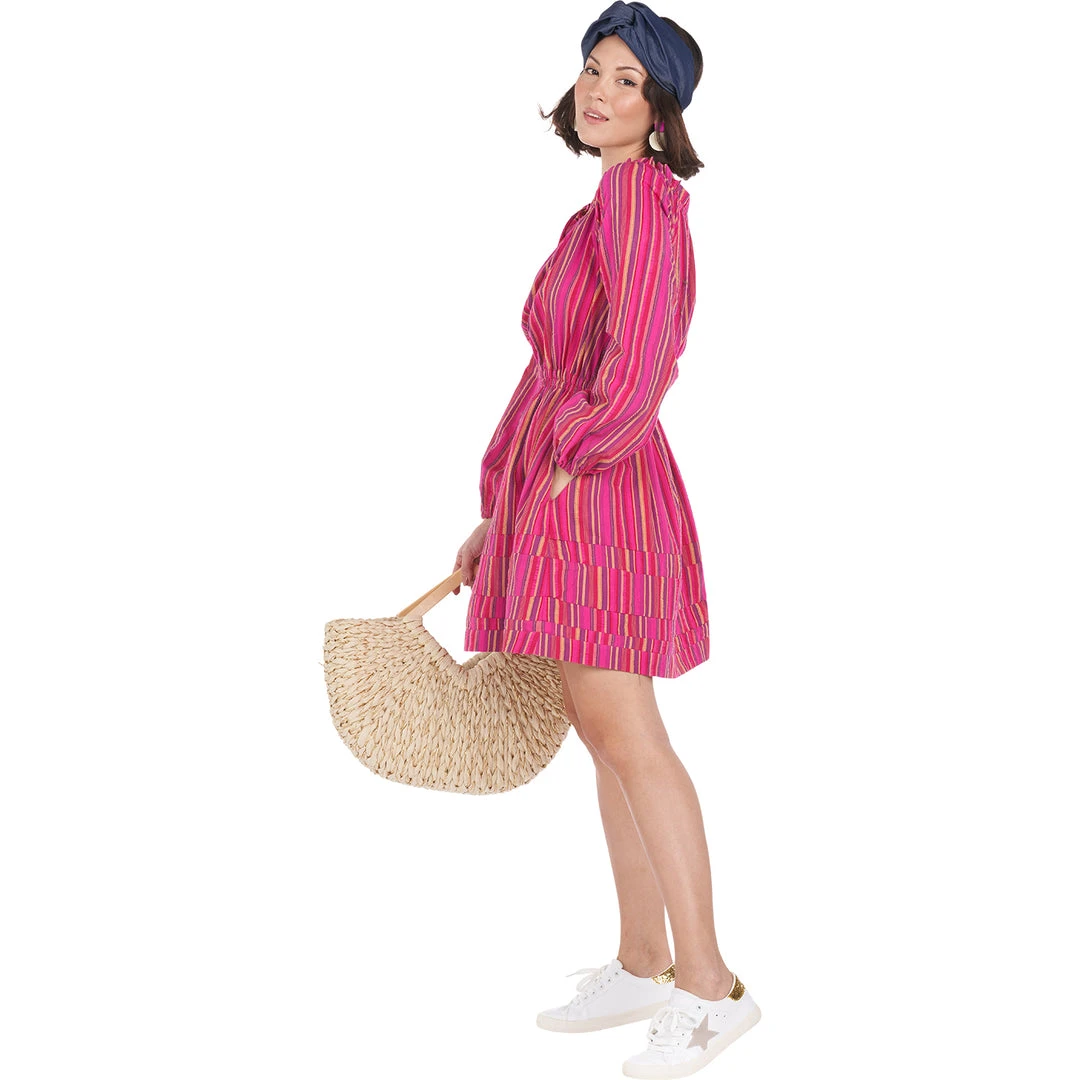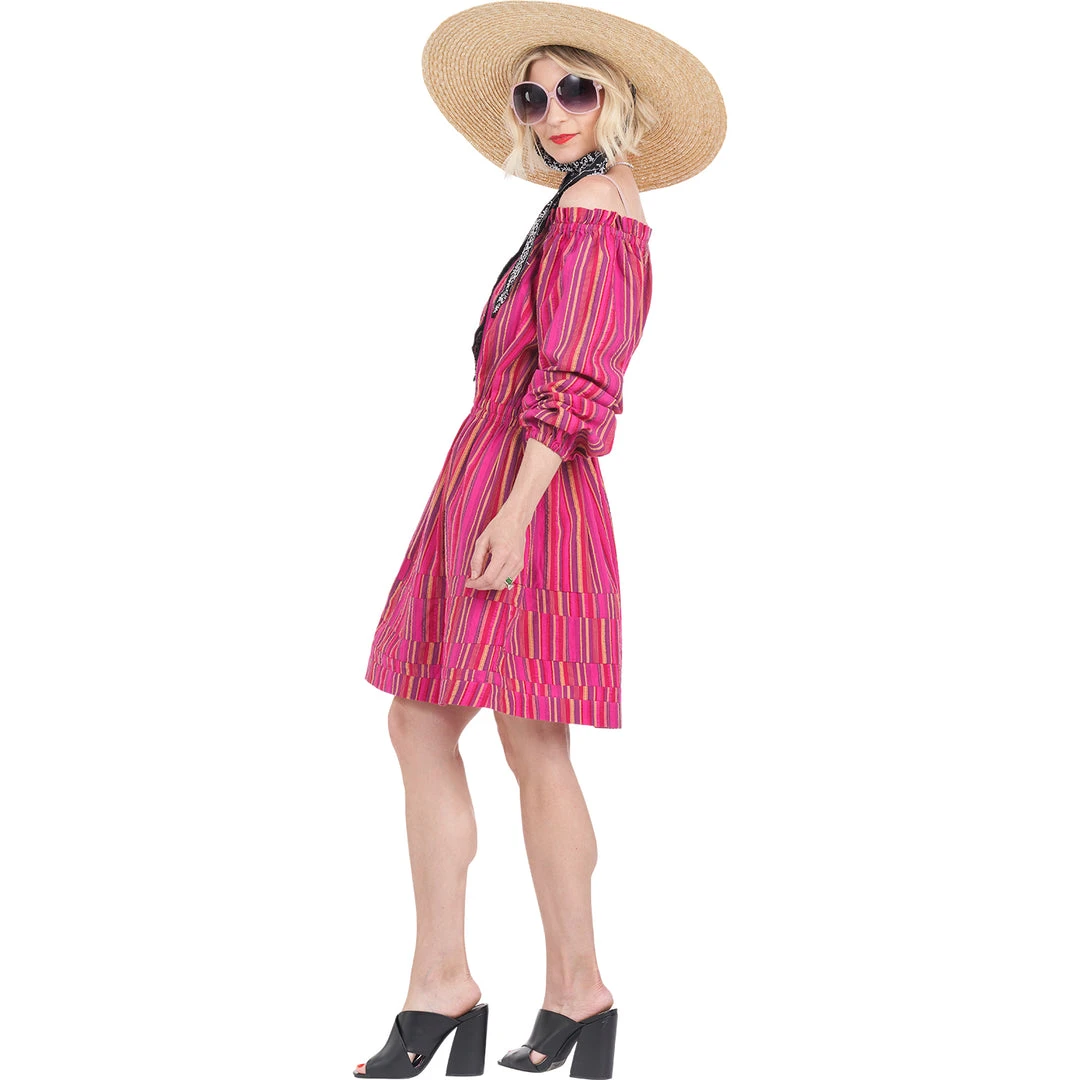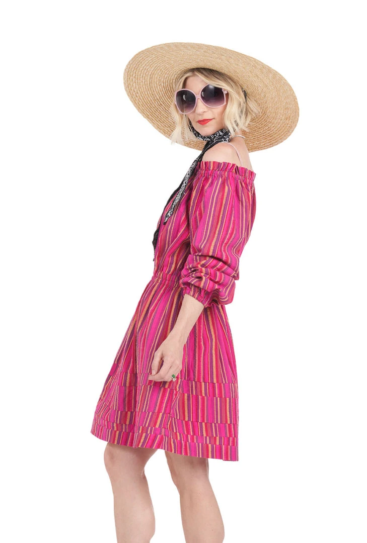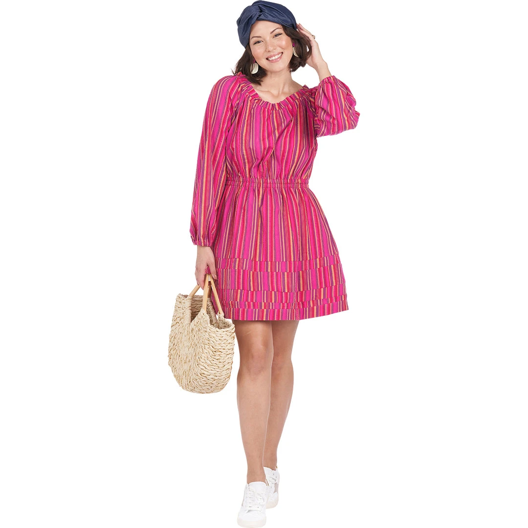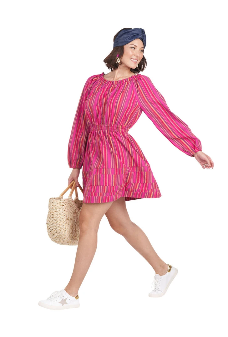 She’s comfortable, she’s stylish, she’s your new favorite throw-on-and-go dress! Perfect for Indian summers that fade to fall. The styling possibilities are endless with this cotton, hot pink stripe dress. Pair wedges for dinners alfresco or throw on a denim jacket and your favorite sneakers for the carpool line. Wear it on or off the shoulder for different looks.
